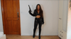 Under Arrest real hand cuffs 10:57. Handcuffs put on wrists, voice over of officer. Full body and close up hands behind back cuffed. Side body front pat down. Face down on the floor in hogtie position, cuffed & crying out. Side views & above views. Gun.