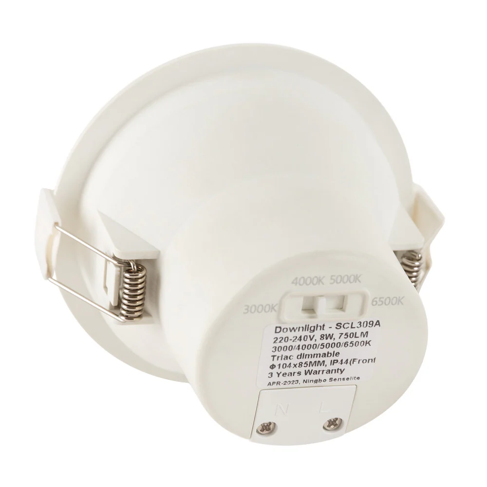 The Circular LED Downlight 3CCT Dimmable IP44 Ø90 mm Cutout is a fixture designed to provide safe, high-quality lighting. This type of lighting is ideal for offices, homes, shops, and restaurants. This particular model offers a selection of three different color temperatures ranging from 3000K to 6500K, allowing you to adapt the lighting to your specific needs.