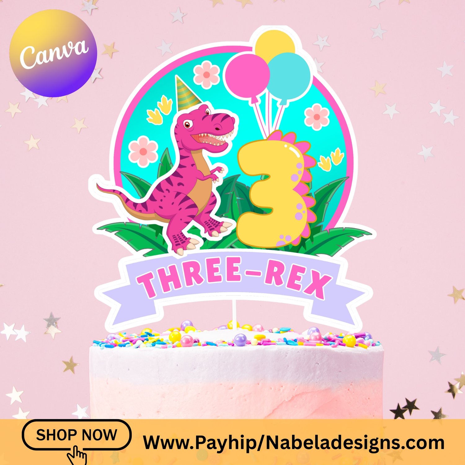 Make your little girl’s birthday roar-some with this Three Rex Cake Topper 🎂🦖.