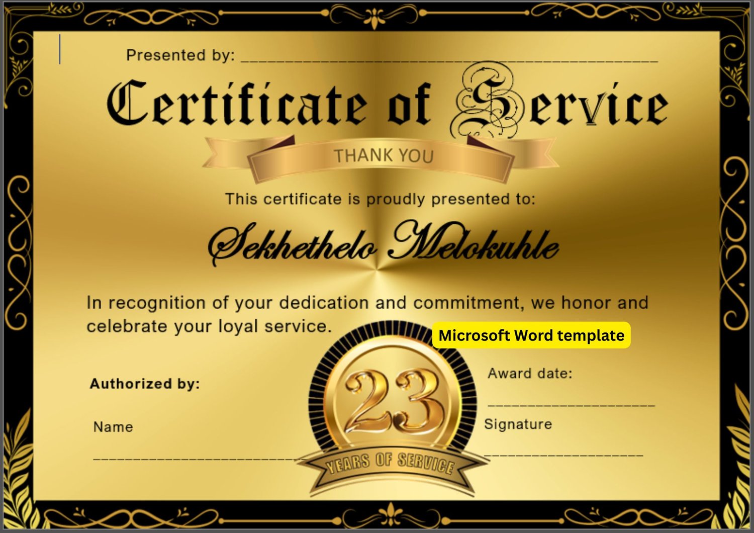 23 Years of service | Editable Microsoft Word template | Landscape G0103L230023