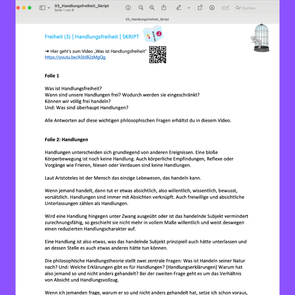 Das Produkt "Freiheit und Determination - Skripte & Folien" enthält