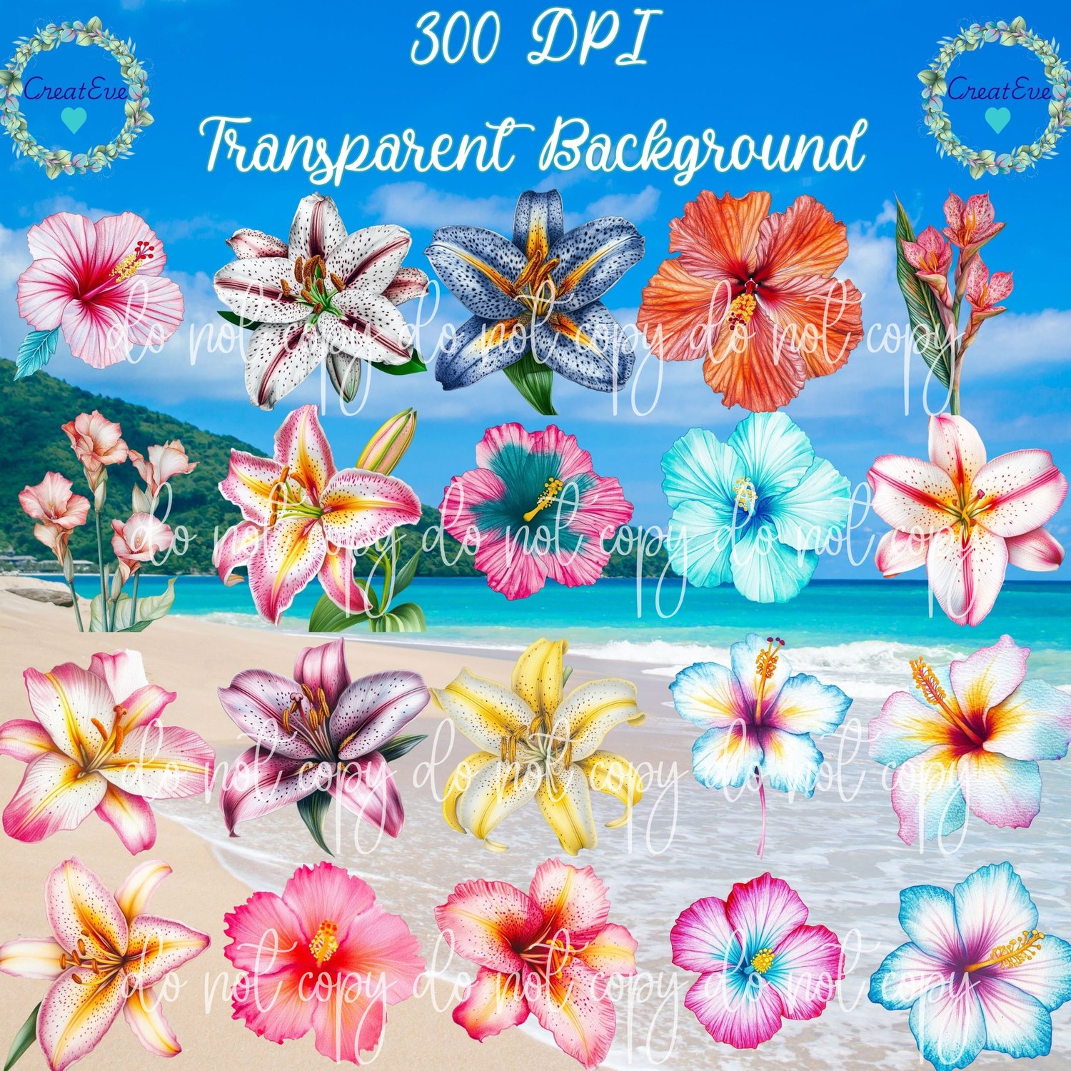 Preppy Hibiscus and Lillies Commercial Use Clipart 60 Image Bundle