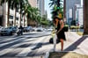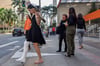 When crossing a crosswalk, a brunette woman pulls up next to her and speaks some compliments about her plaster all registered.