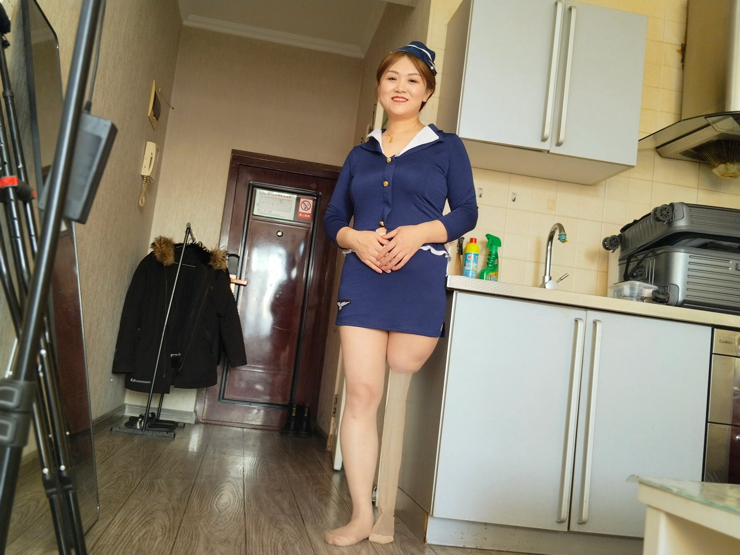 Grace, as a new disabled model, may still appear somewhat immature, but she is the one most willing to try. Today, she will fulfill a long-held dream of hers, which is to become an airplane attendant. She has fantasized countless times about wearing a beautiful stewardess uniform and shuttling through the passenger cabin of an airplane. Today, she has finally realized part of her dream