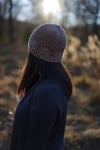 Brioche increases and decreases form a rich crown of thistles around this squishy hat. The pattern is written for three sizes; the bouncy, stretchy fabric gives it a flexible fit. Depth is easily adjustable for the perfect amount of slouch, or none at all. The hat uses small amounts of yarn and is a quick and easy project.