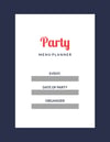 Cover: “Party Menu Planner” with fields to note the event and organizer.