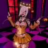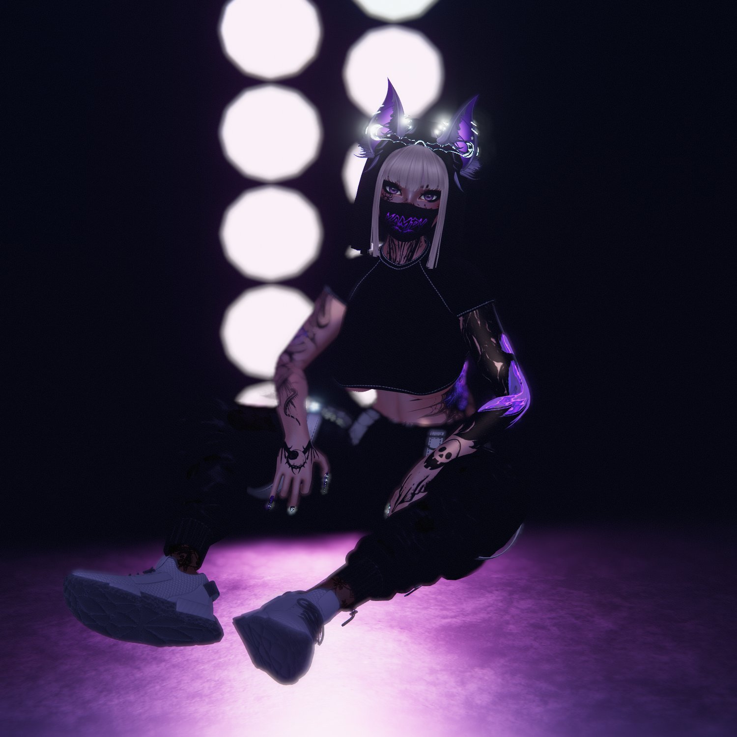 A little bit to know about Vampy. She has 4 outfits, a body slider, a pole, a rave mask, 4 hairstyles (2 without bangs, 5 with bangs so technically 7), fans, plushies and hue shifts on nearly everything and more. I am happy I finally figured out how to do bling correctly, of course VRChat's in game main menu lets you control bloom intensity so you can also change how much your metal blings/sparkles. And if you didn't already know that, well now you know. I am super proud of this avatar I have been working on her for about a month and she is inspired by one of my best friends VampyBunny (who is also the dancer for her showcase).