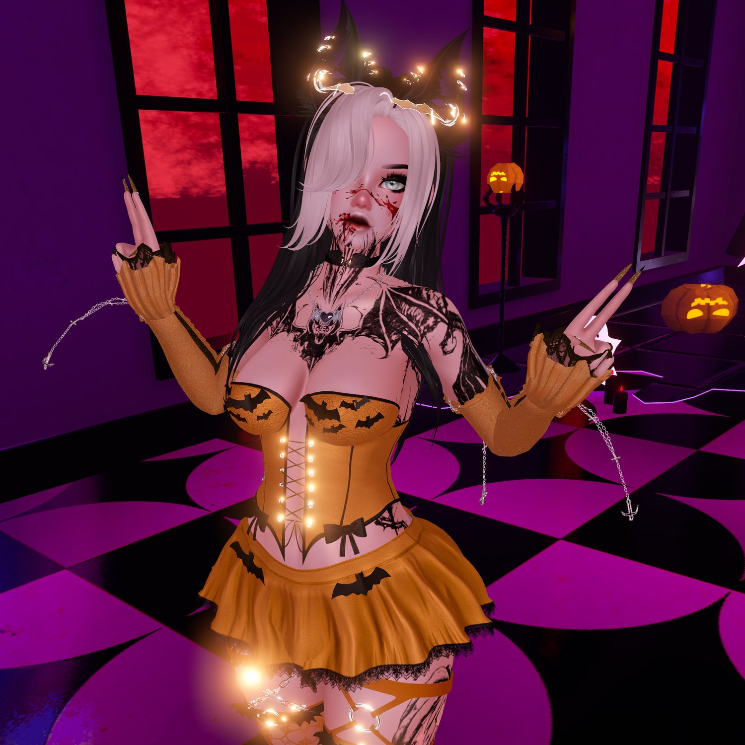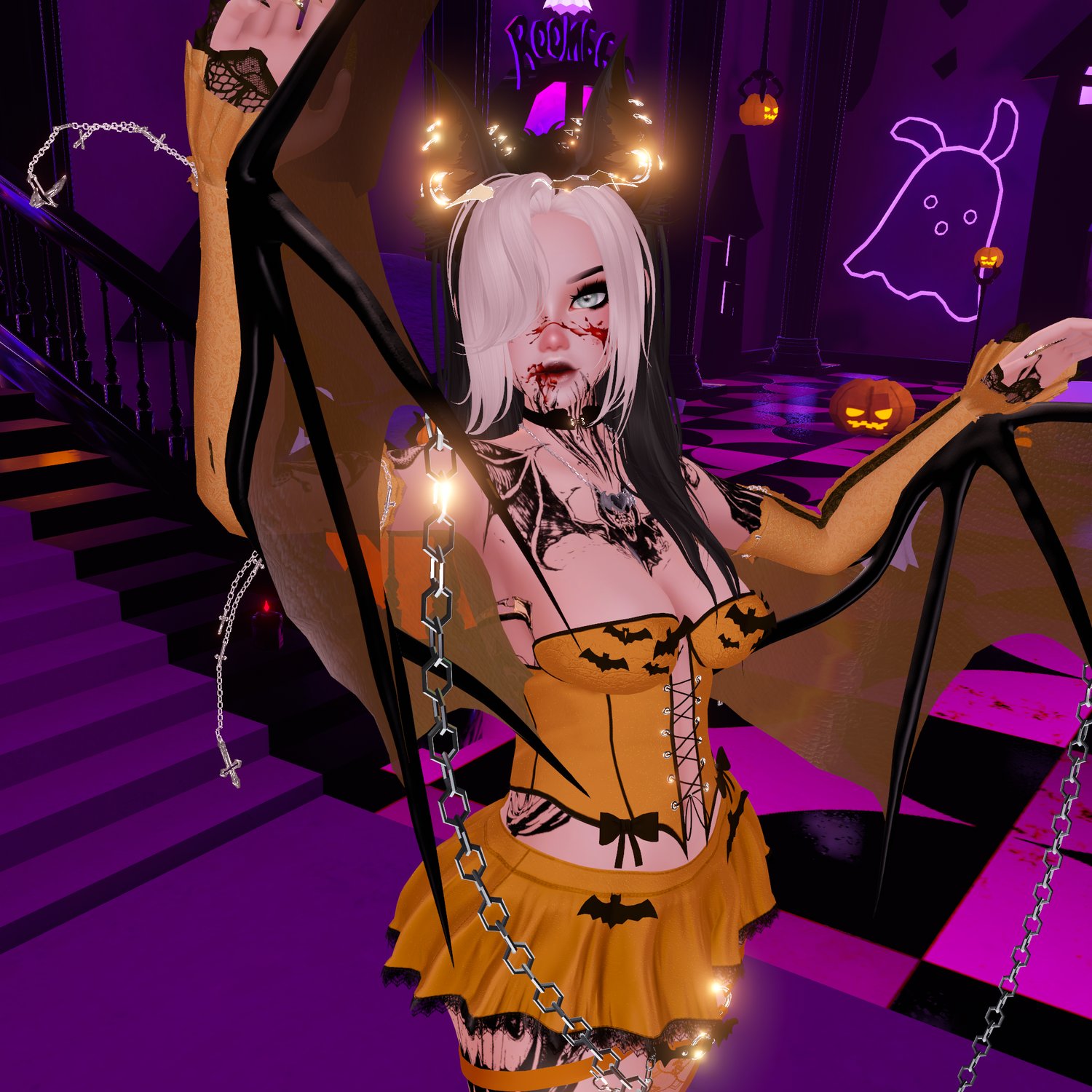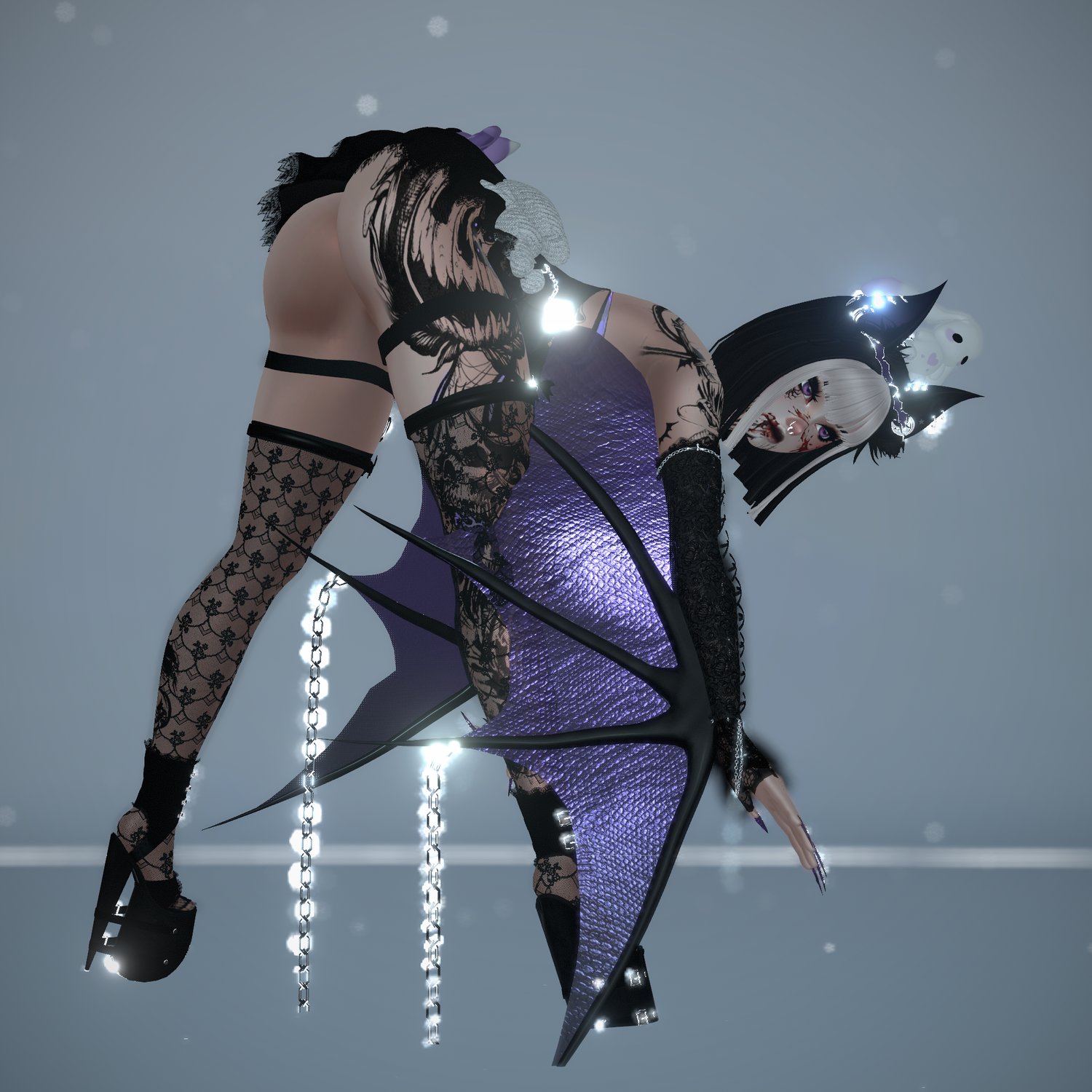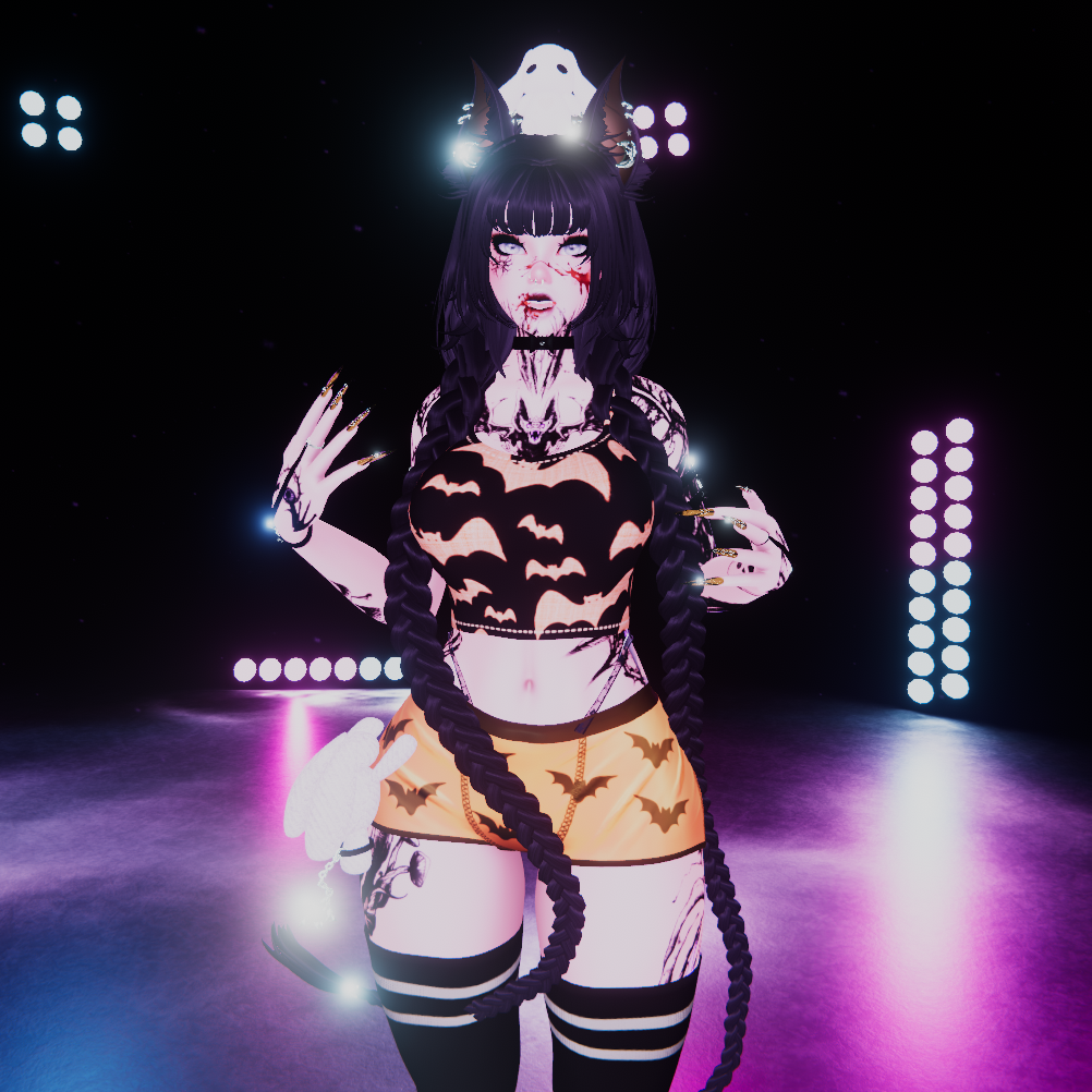 β© Toggles: (expressions, bat glasses, glasses up/down slider, bat booty plush, bunny head plush, bat ears, bunny ears, bunny ears with nametag, bat wings with chains, bat wings without chains, bat follower, batty sleeves, batty corset, batty skirt, batty heels, batty stockings, bat garters, bat choker, bow collar, arm straps, bat spring joint, bra, thong, bat pasties, x pasties, thigh balls, harness, boots, piercings, belt, thigh bunny, socks, mask, pajama pants, boxers, sneakers, crop top, cami top, cargo pants, necklace, bat ears/wings color swap, four batty outfit color swaps, 3 skin swaps, cage, cage pole, left bat fan, right bat fan, boob/butt slider, eye color swap, gogo loco, hair bob, bob with bangs, fringe hair down, braids, braids with bangs, ponytail, buffy hair, hair color swap, bangs color swap)