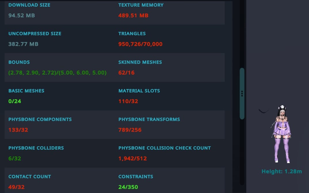 2025 Update, switched from DPS to SPS & decreased her overall size from 148MB in game size to 94MB :3 also made her metals no longer blinding, still blingy, but not so sparkly they blind you lol.