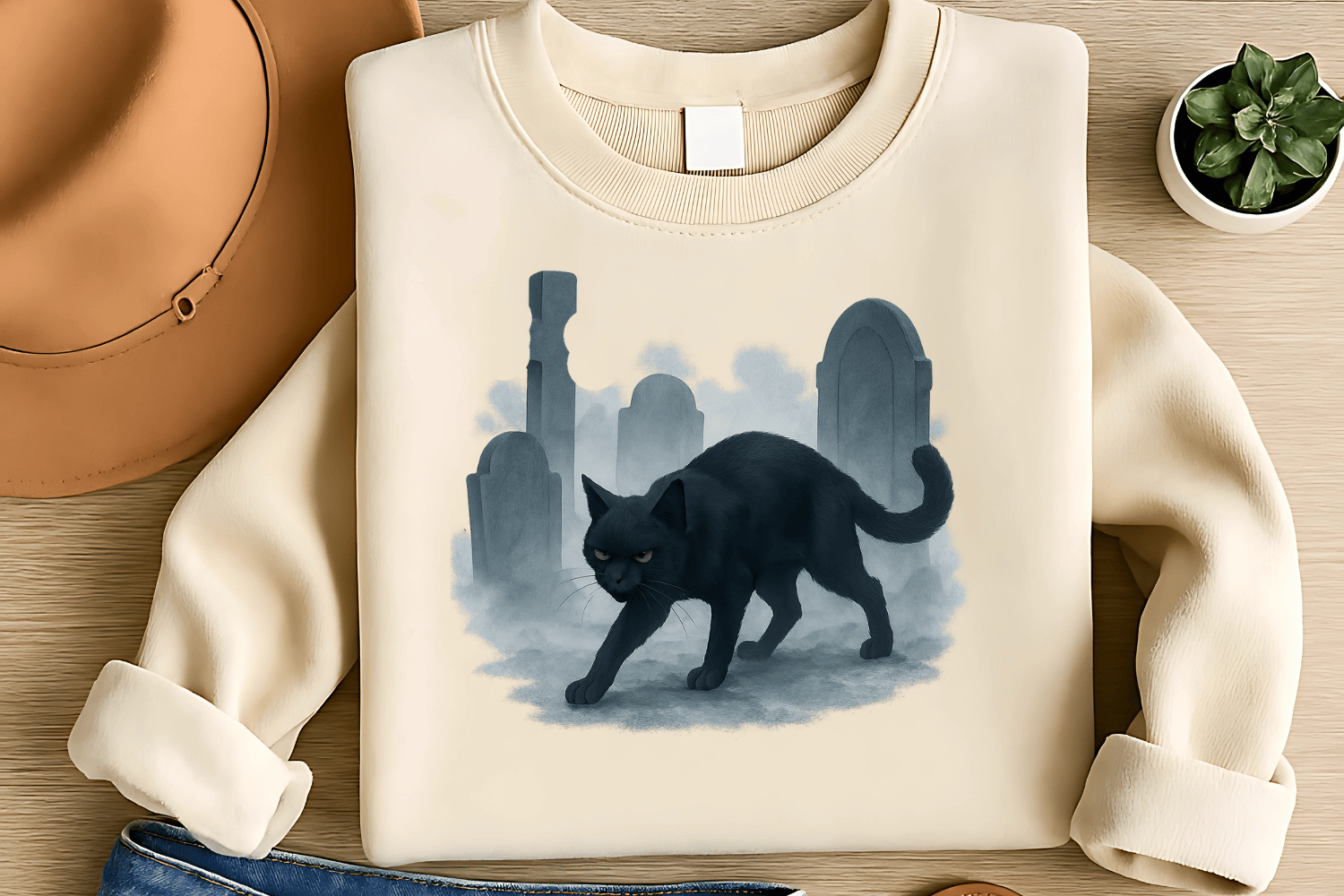 Bring a touch of haunted mystery to your projects with this cemetery-inspired black cat design—creepy, bold, and perfect for Halloween night! 🐈⬛🪦🌙