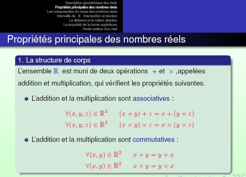 - Propriétés fondamentales des nombres réels