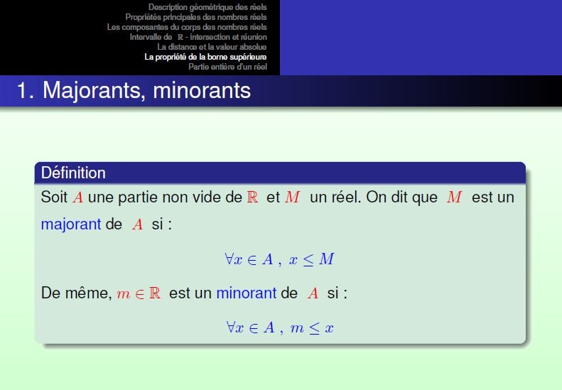 - La propriété de la borne supérieure et inférieure .