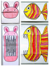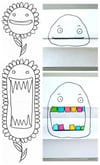 This printable template pack includes 4 printable surprise creatures: fish, guy, flower, and bunny.