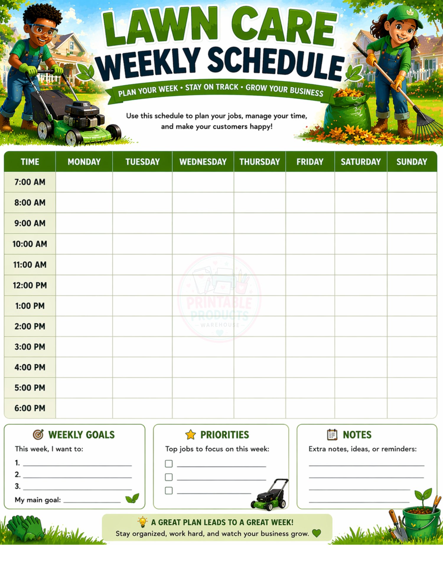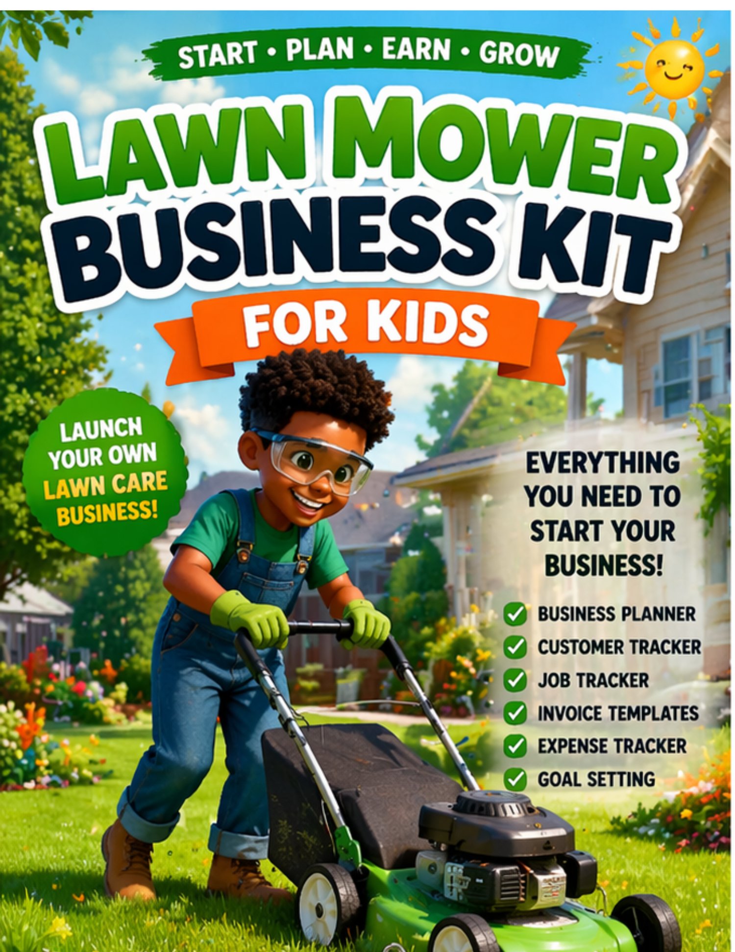 Kids Lawn Care Business Kit | Printable Lawn Service Planner for Kids | Lawn Mowing Business, Sales Tracker, Job Tracker & Entrepreneur Kit