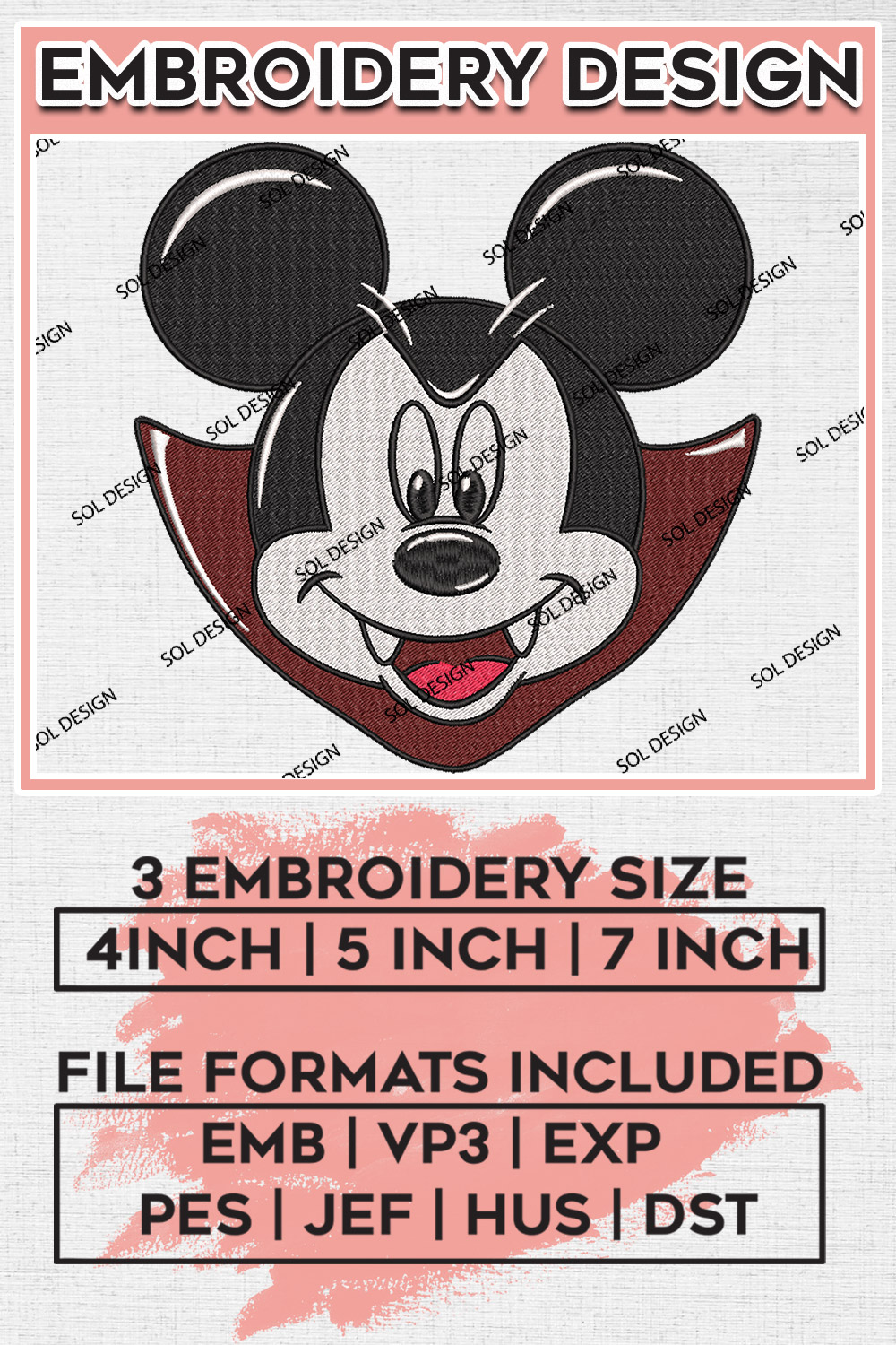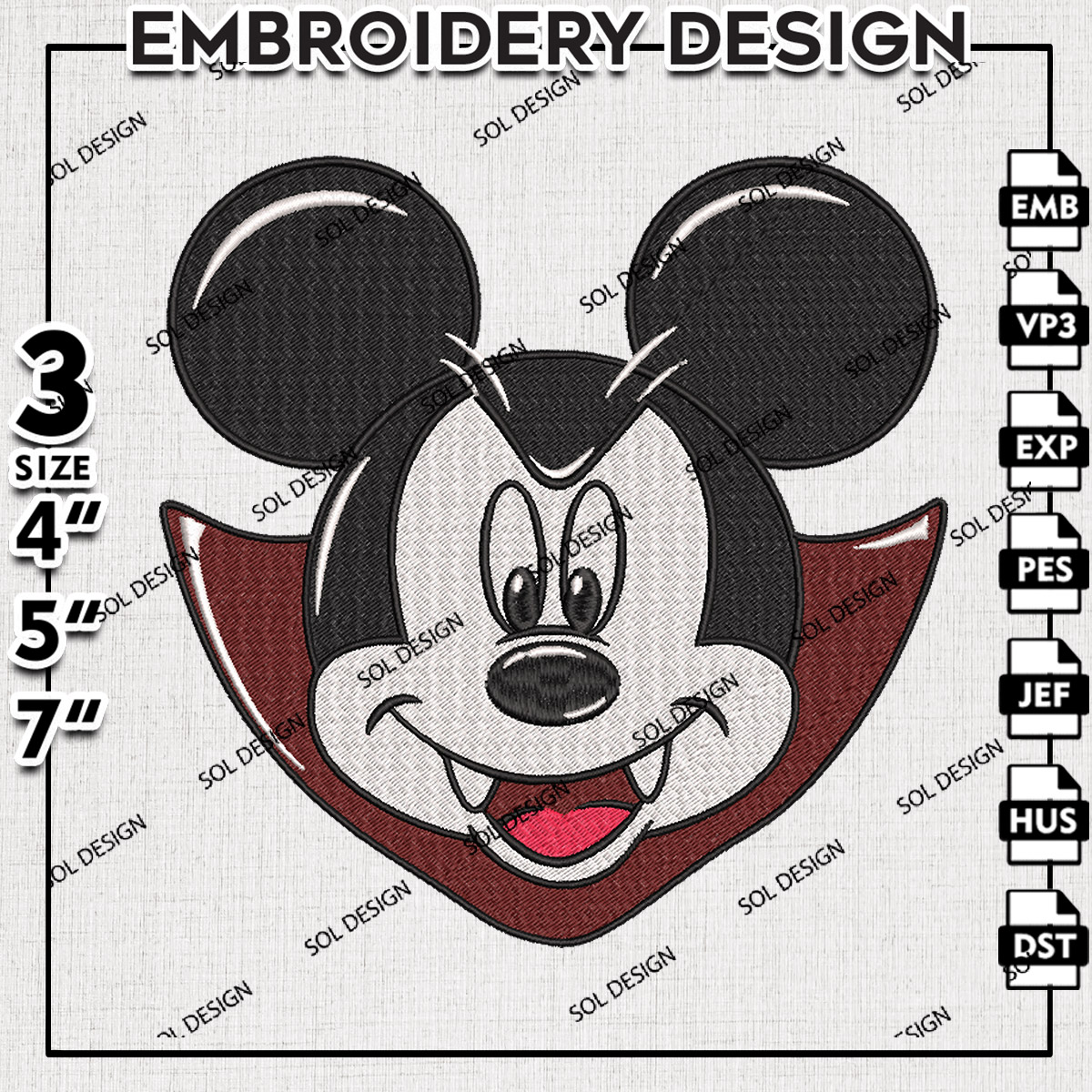 Halloween Mickey Mouse Dracular Head Embroidery Designs, Minnie Mouse Pumpkin Embroidery Files, Disney Halloween Embroidery, Disneyland Machine Embroidery Design, Digital Download
