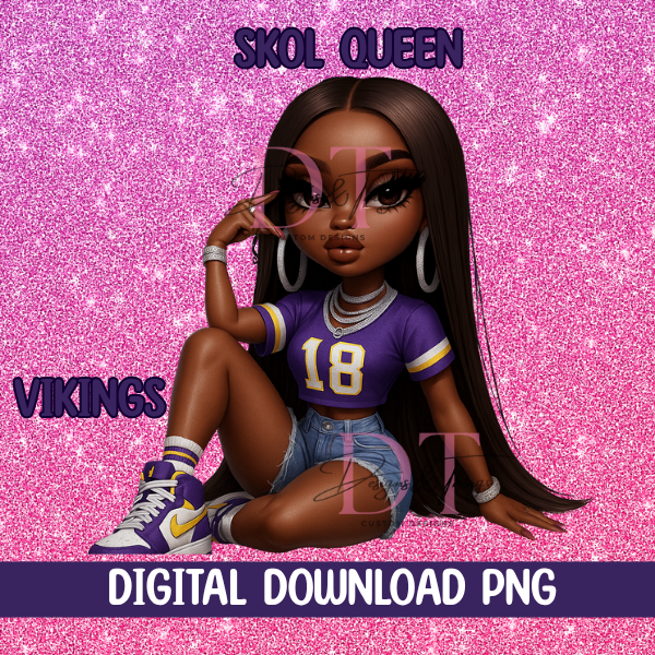Bring royal energy to game day with our Skol Queen PNG! Styled in bold purple and gold with glam details and fierce pride, this custom-designed queen is perfect for Minnesota fans who reign with confidence. Whether you’re designing shirts, tumblers, mugs, or small business merch, this queen is ready to lead your football season lineup in style. Delivered as a high-resolution PNG with a transparent background, she’s ready for both personal and commercial use.