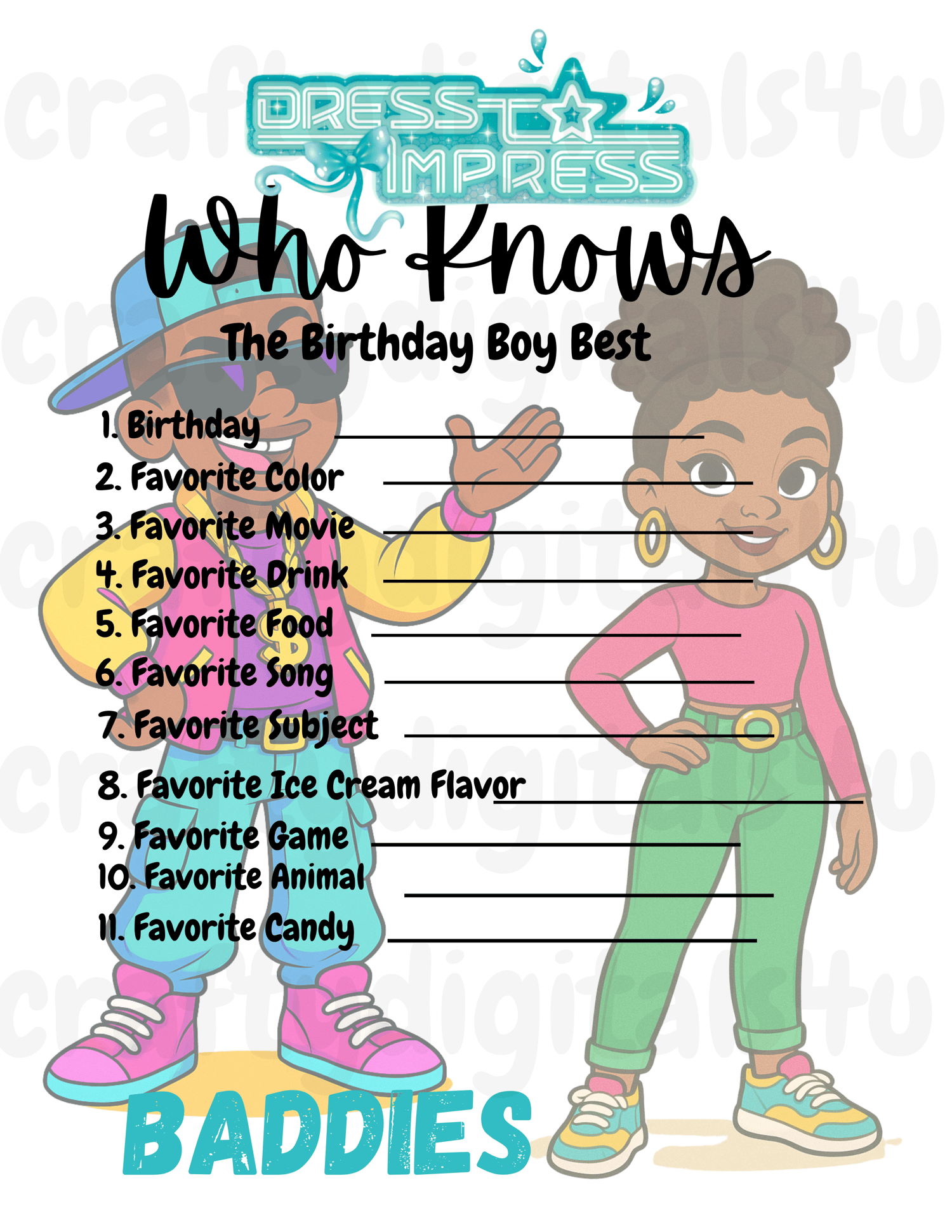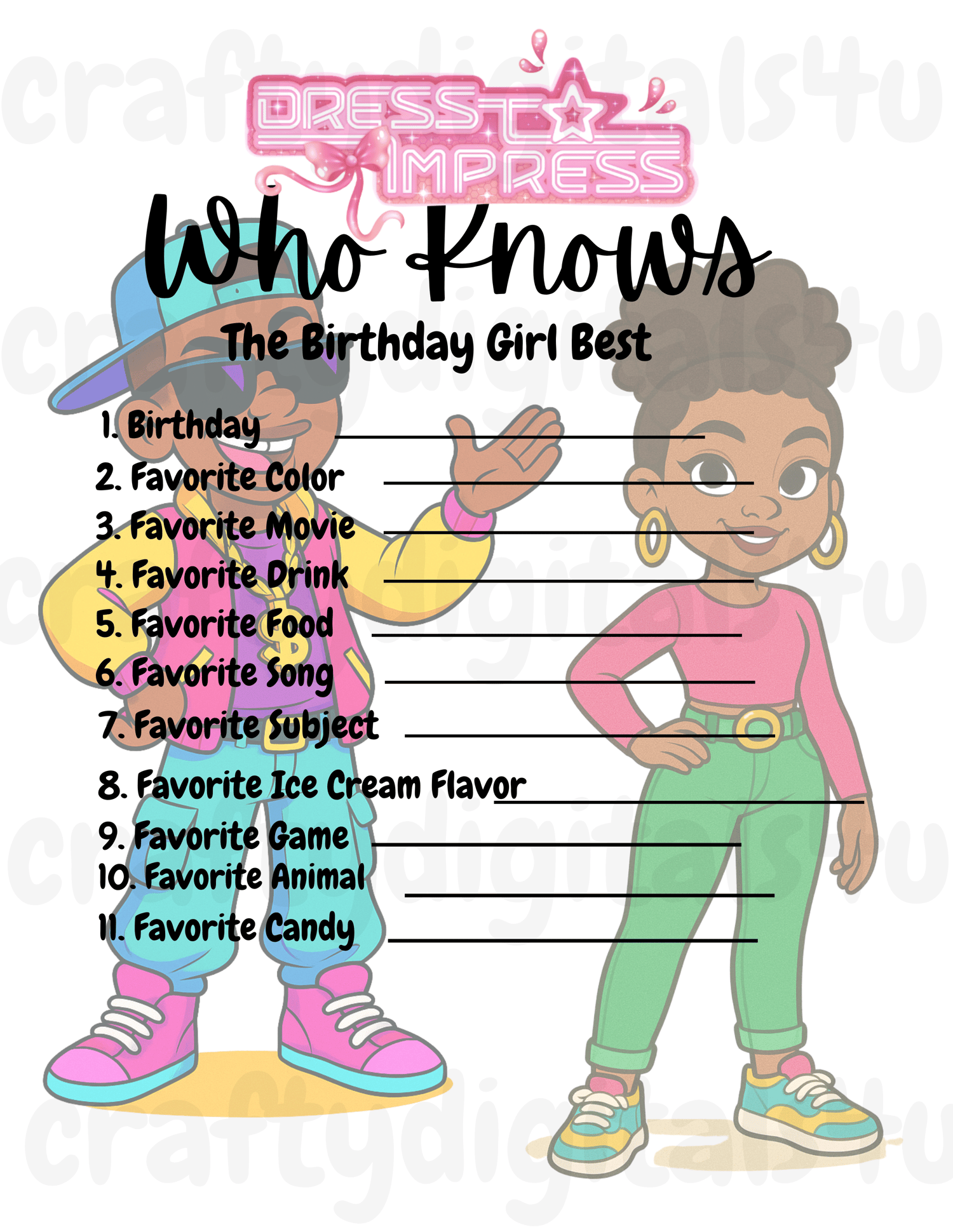 Dress to Impress Party Game Pack | This or That & Who Knows the Birthday Kid | Printable Birthday Games for Girls or Boys | Instant Download