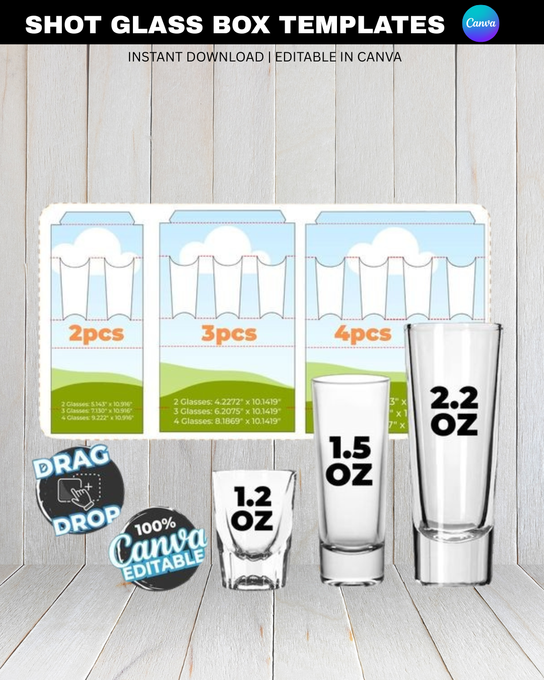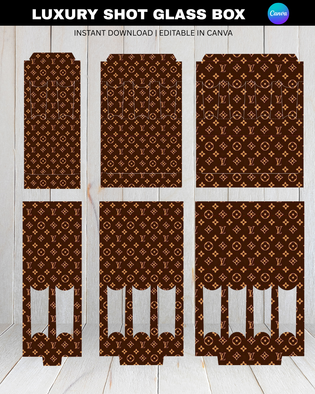 Your shot glasses deserve better💜. Our editable Canva templates let you create luxury packaging in minutes.