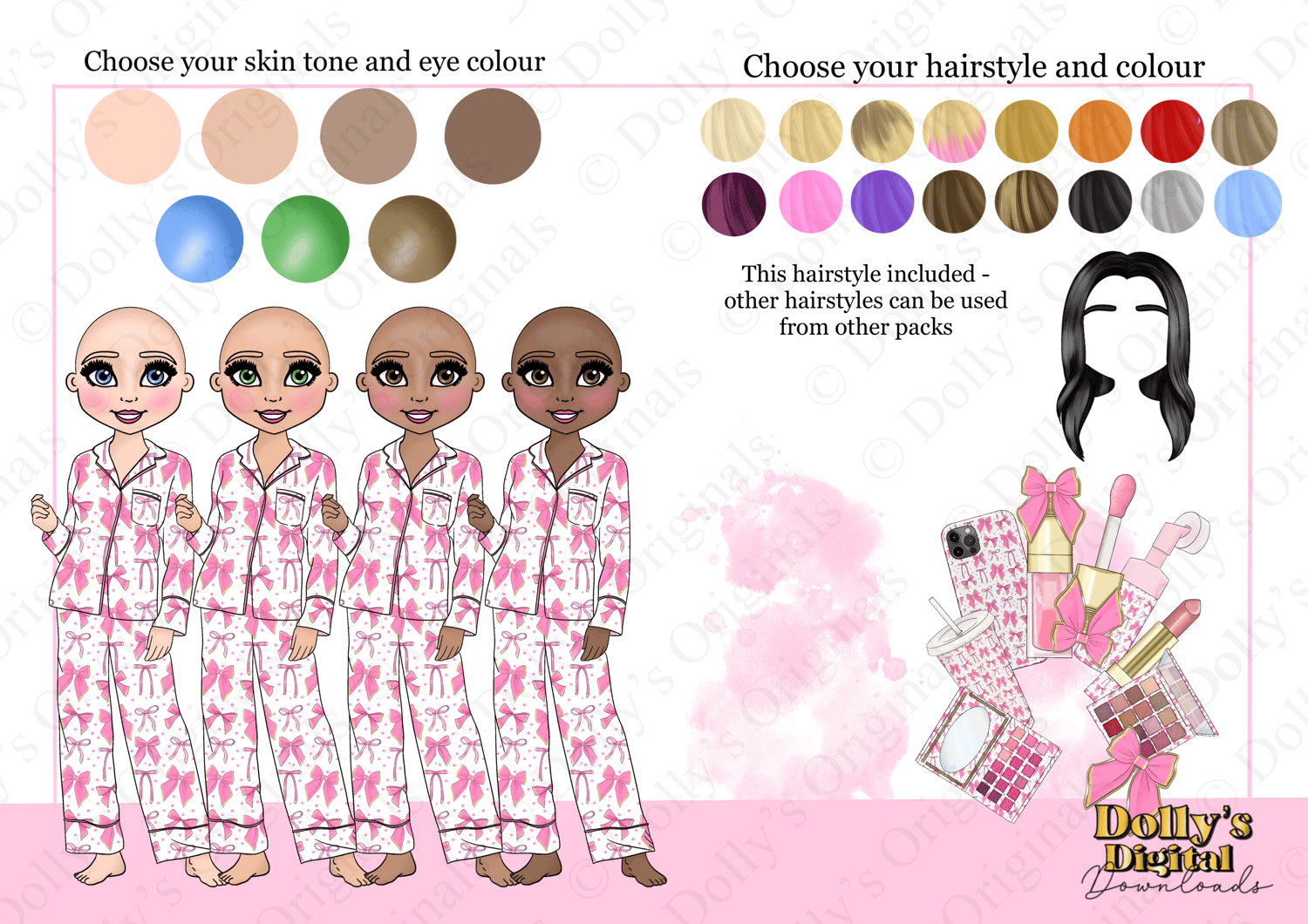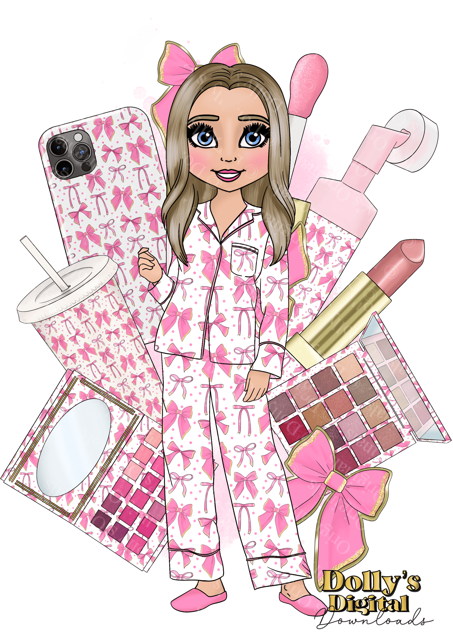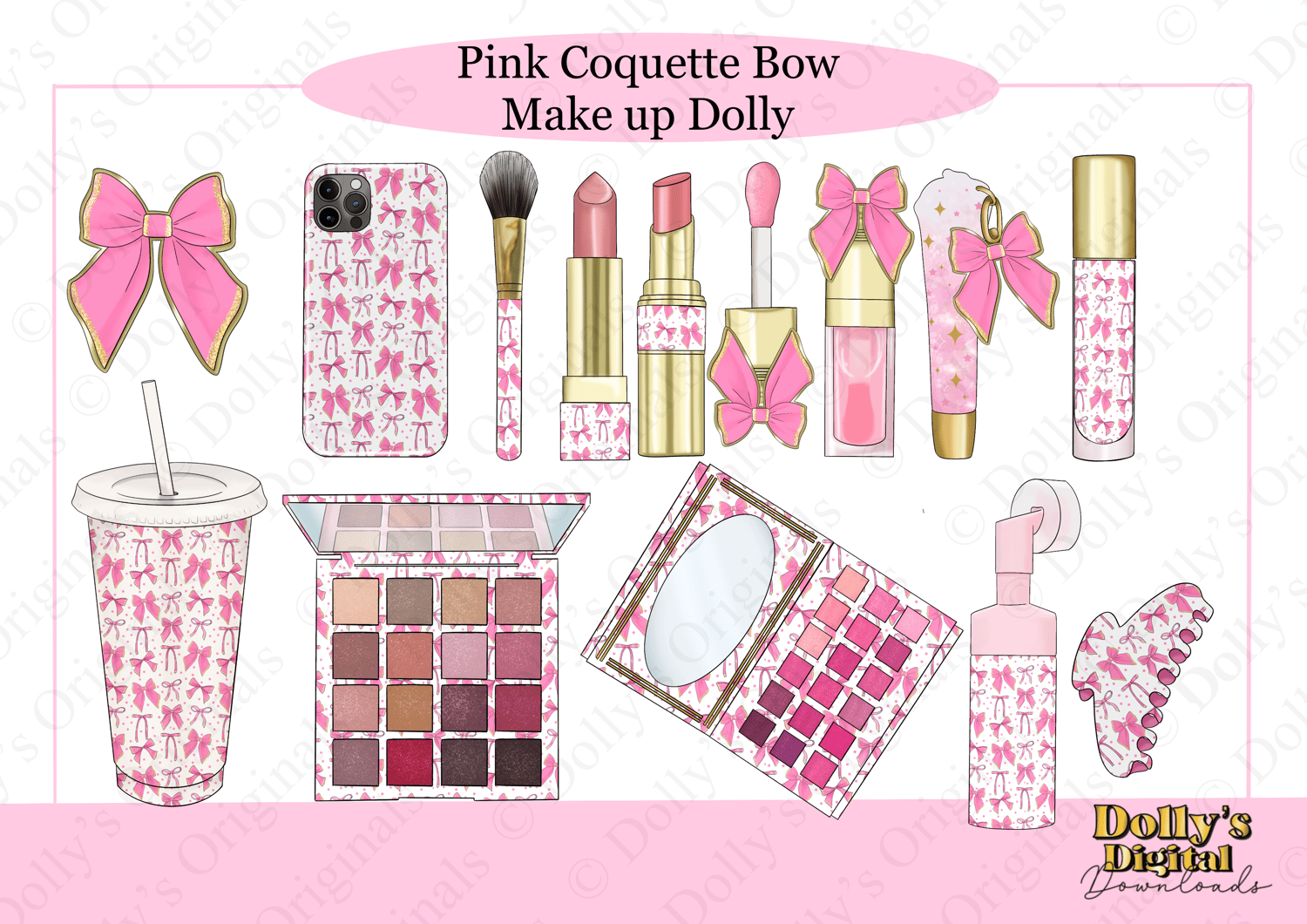 Instant digital download of our Pink Bow Coquette Makeup Dolly Character Bundle PNG (43 PNG’s)