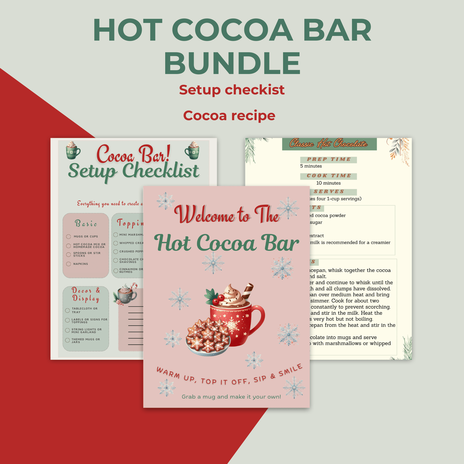 Set up your own delicious hot cocoa station with a printable recipe card and cocoa bar setup checklist.