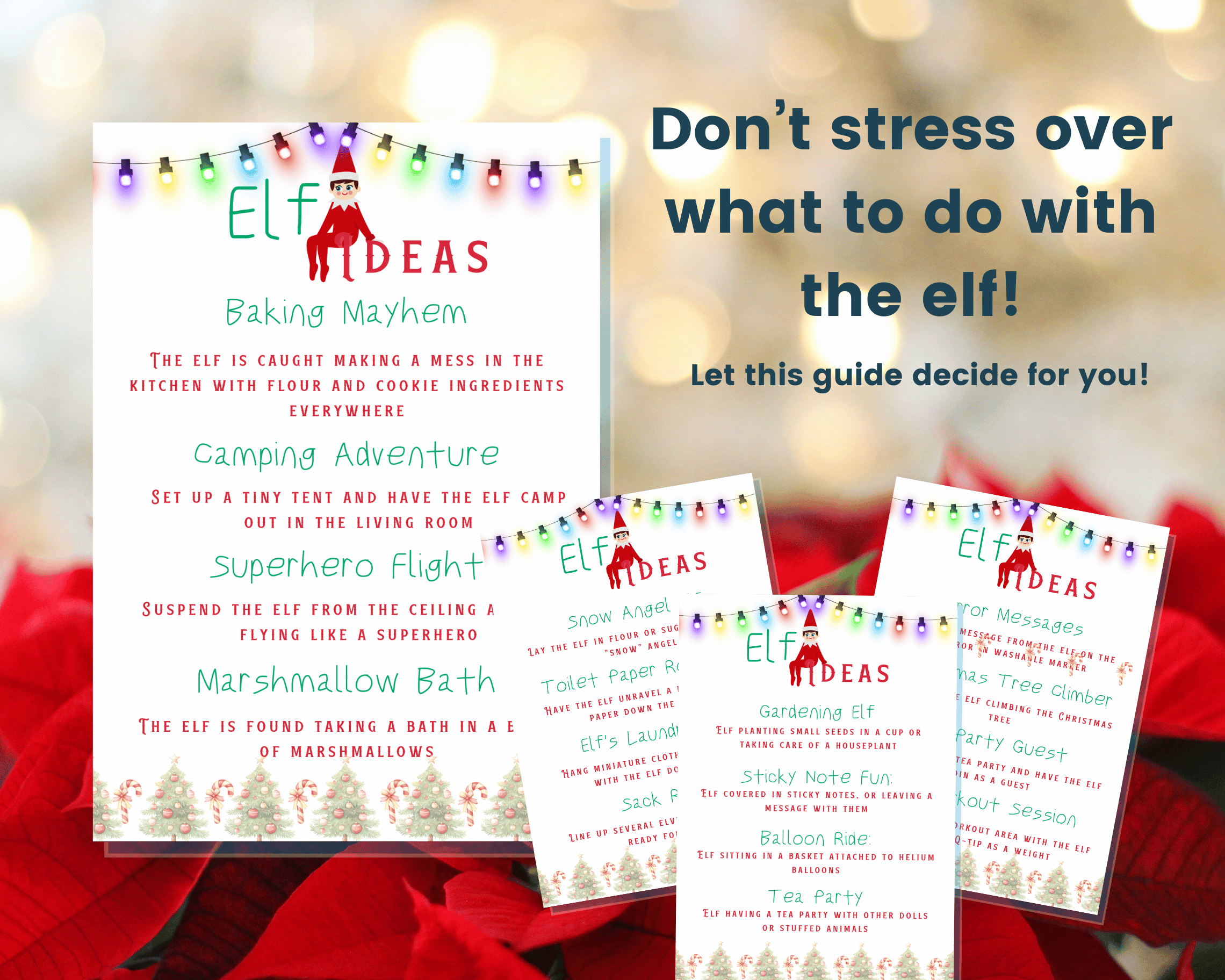 A selection of 24 ideas for your elf on the shelf to do - take the stress of thinking what to do with it with this handy guide.