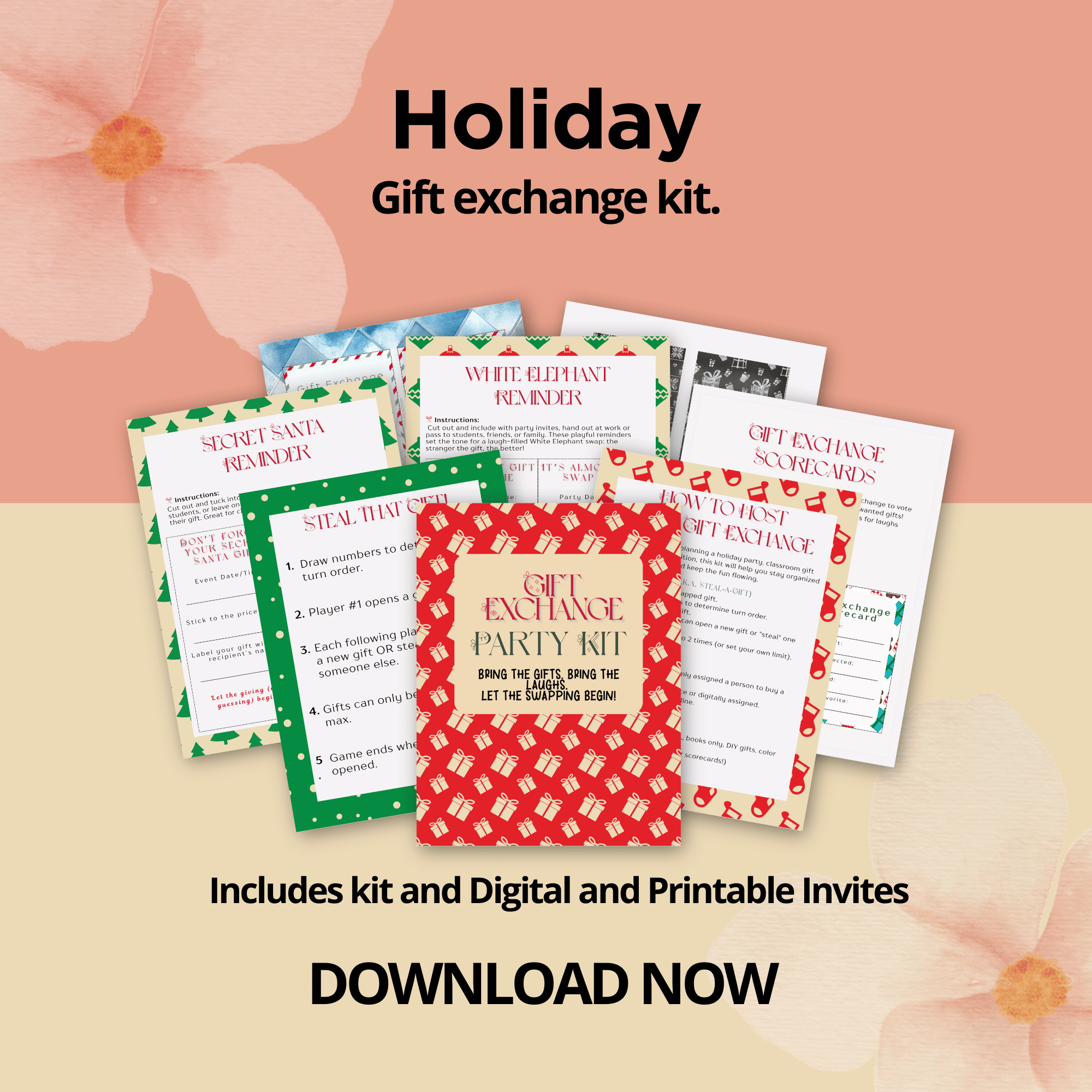 Holiday Gift Exchange Kit – Printable Games & Invites | Secret Santa, White Elephant, Family Fun