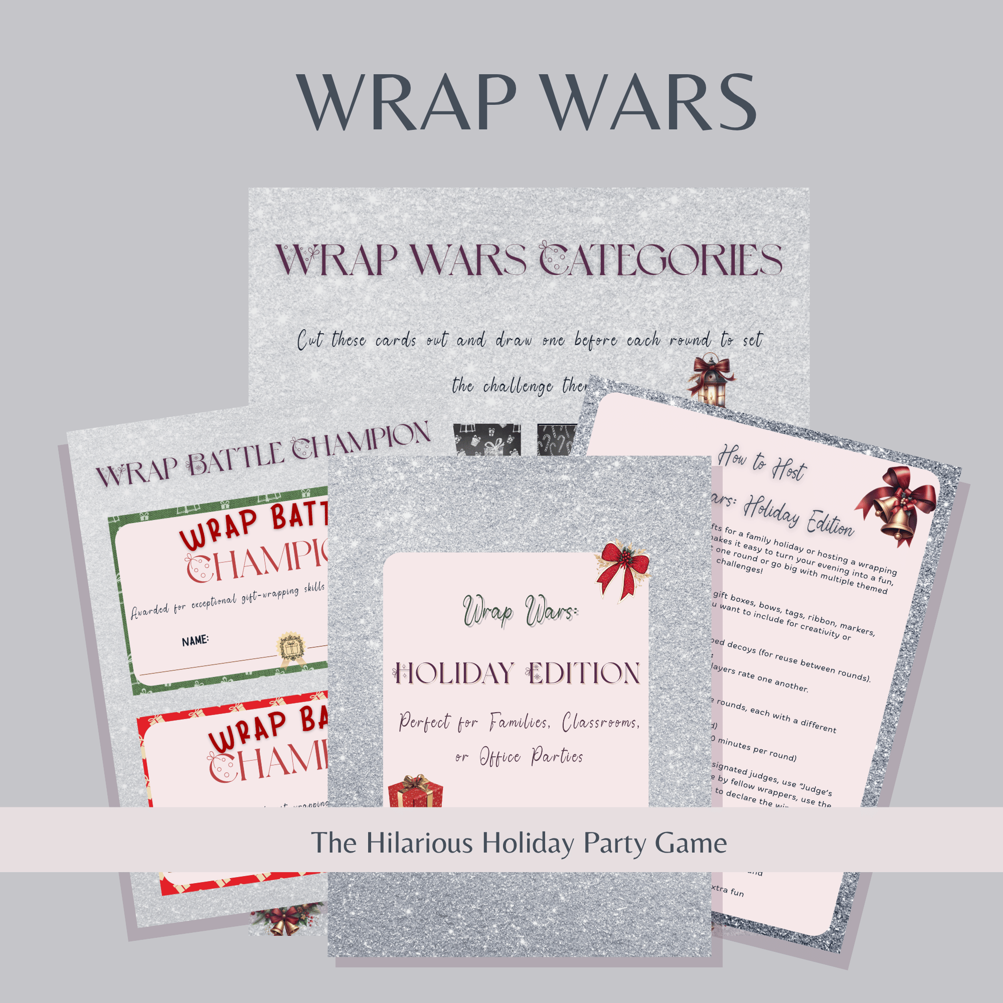 Turn Secret Santa/white elephant into a fun game. includes the game, instructions plus printable and editable digital invites.