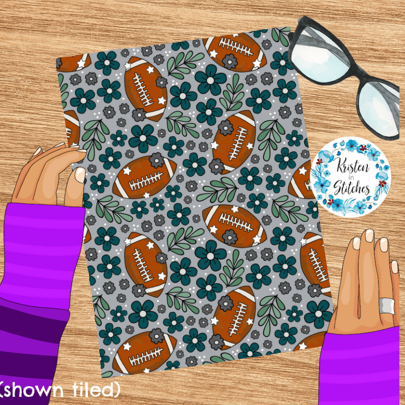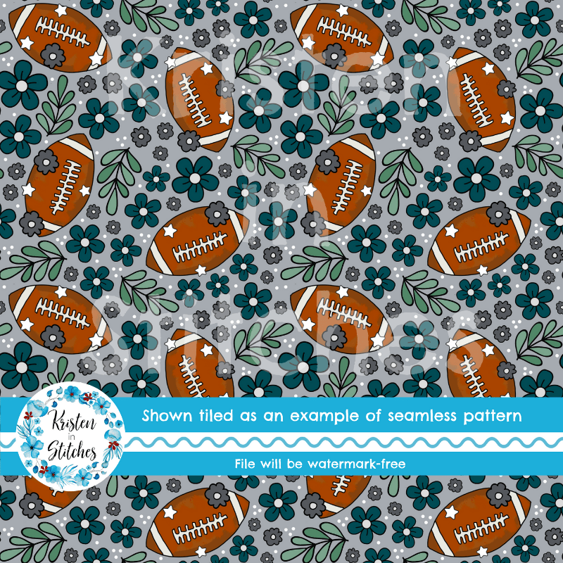 Football Team Spirit Floral Seamless Pattern, Philadelphia Eagles Colors Midnight Green Silver Grey