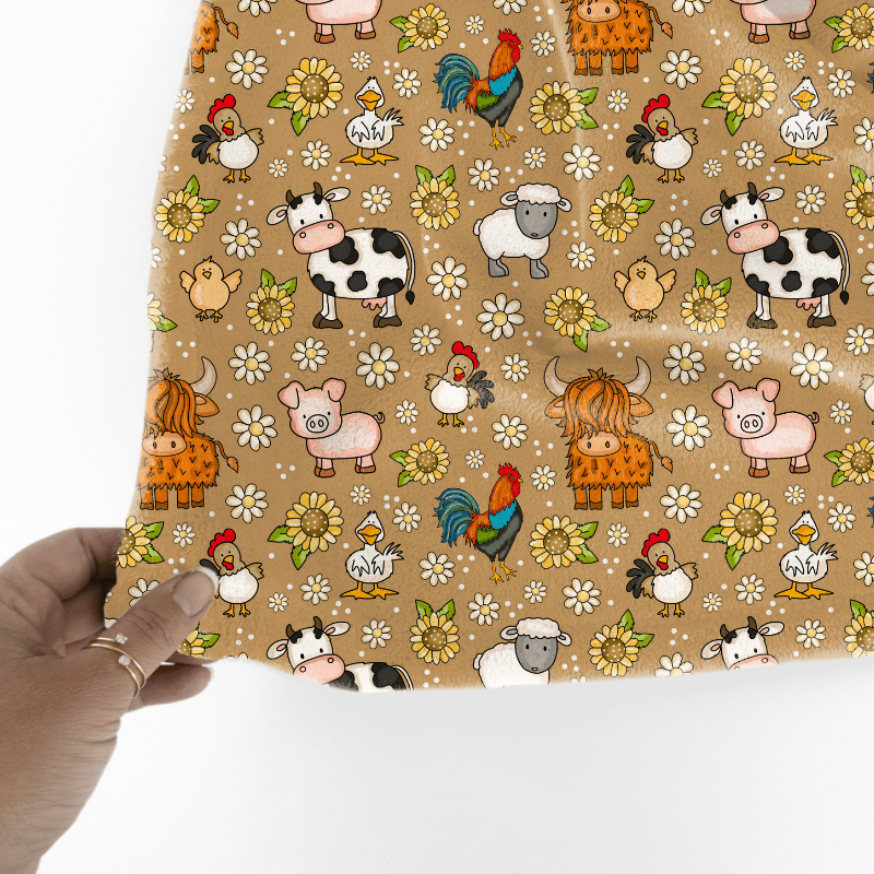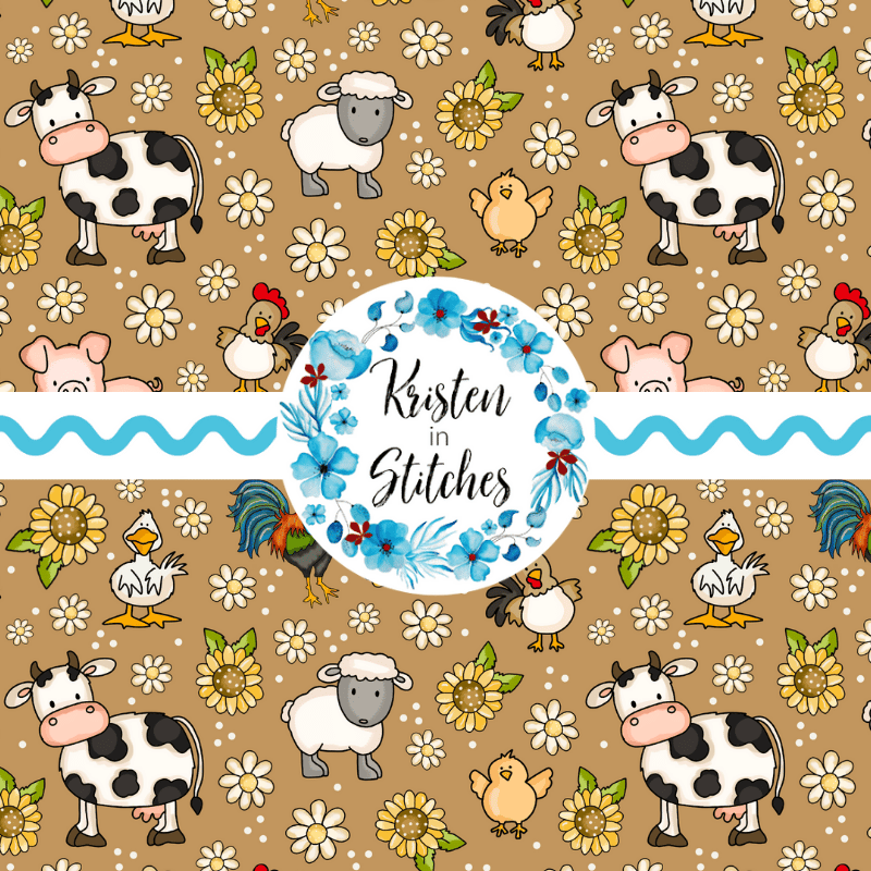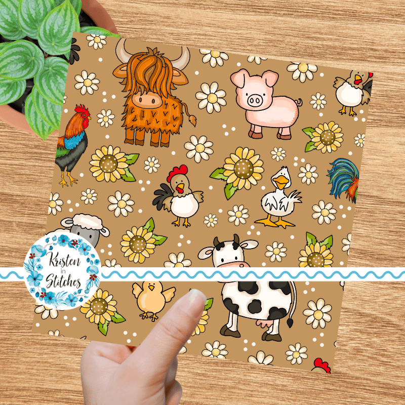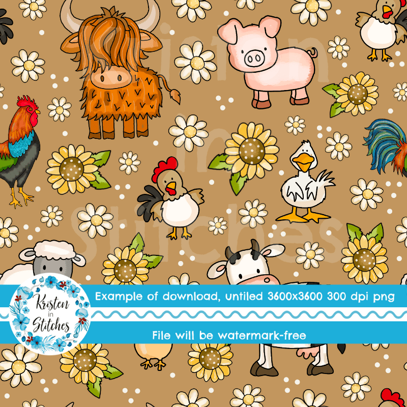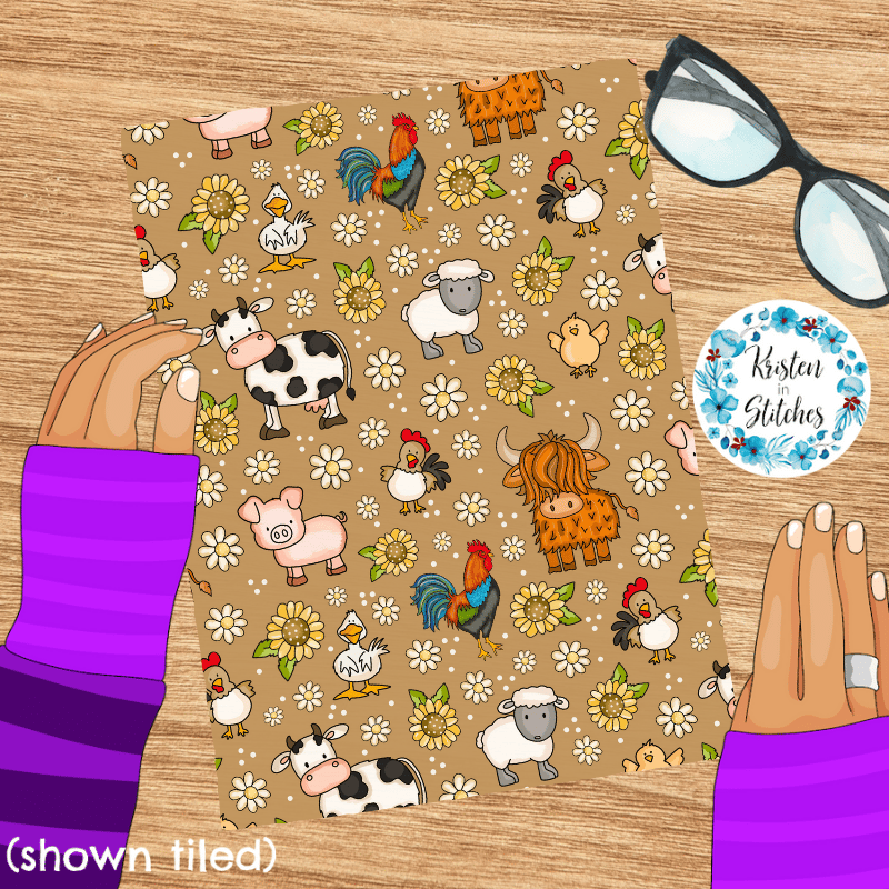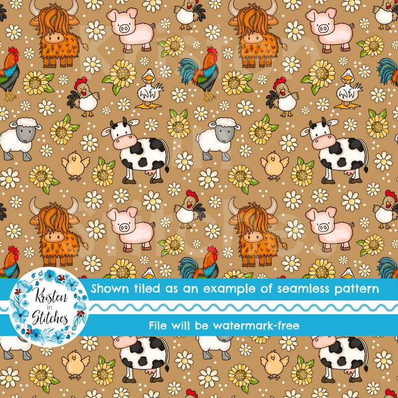 Farm Animals Seamless Pattern, Nursery Floral, Tan