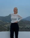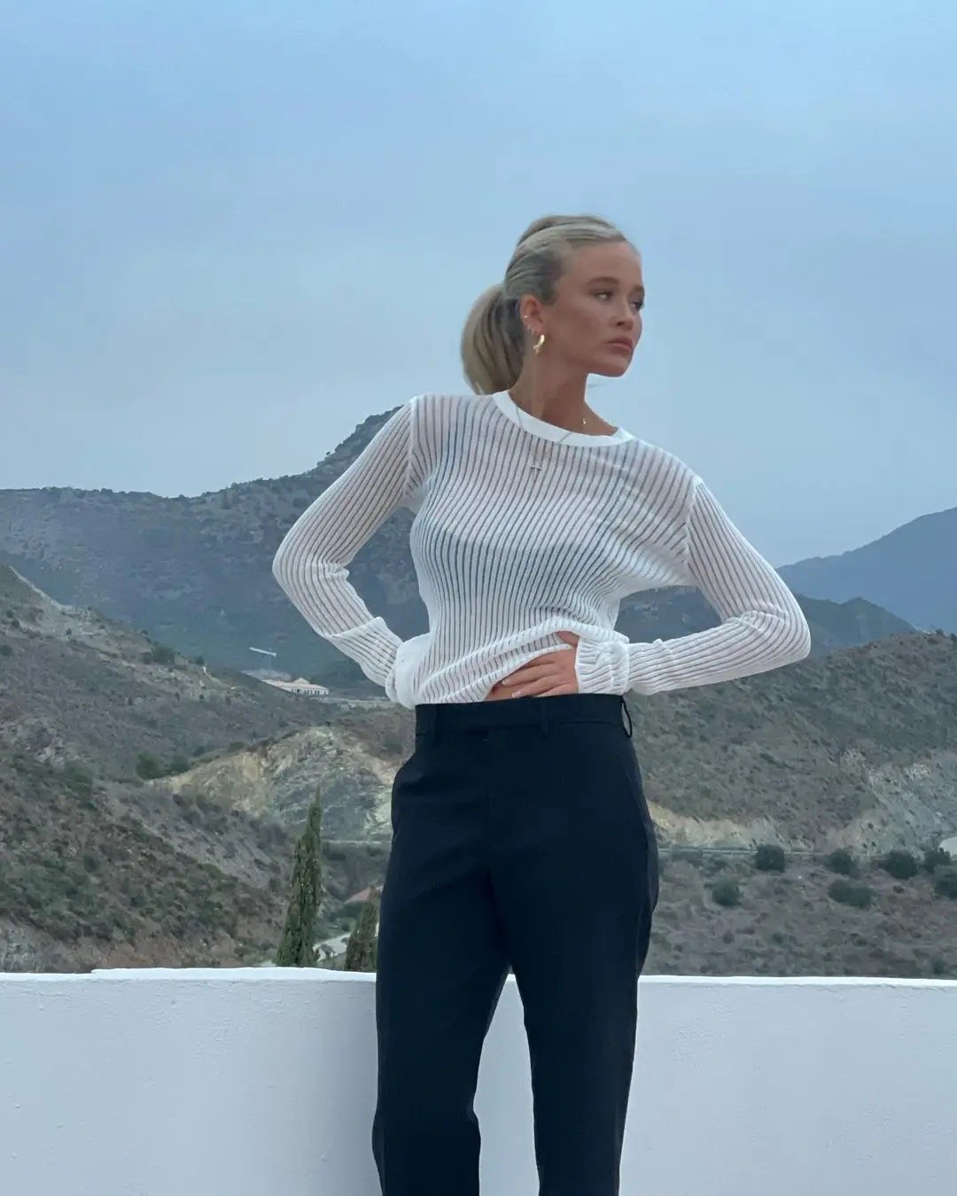 Fashion White Elegant Striped See Through Women Tops Outfits Long Sleeve T-Shirts Tees Skinny Club Party Clothes