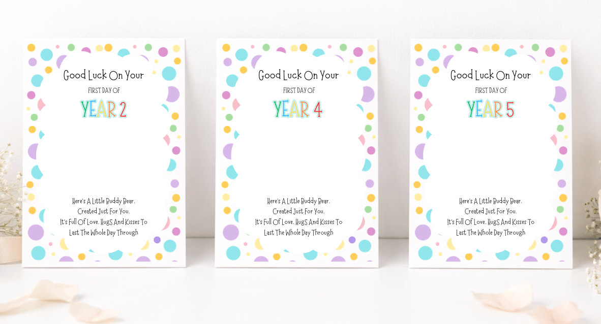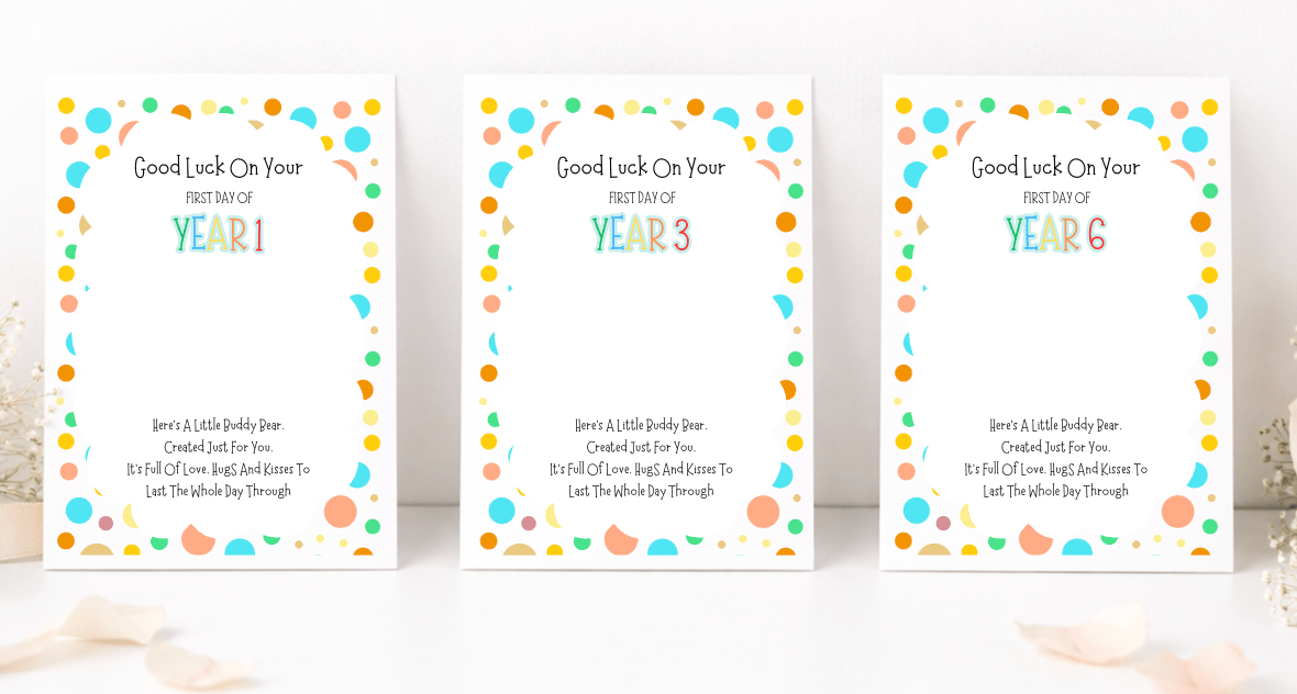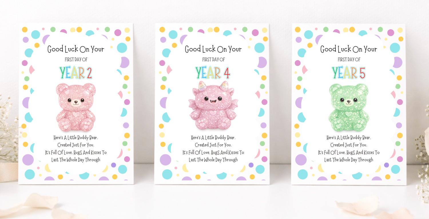 NURSERY - RECEPTION - YEARS 1-6 - GIRLS & BOYS BACKING CARD ONLY - RESIN BEAR SHOWN IS FOR ADVERTISING ONLY - NOT PART OF THE PRINT