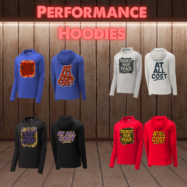 Our best-selling Protect Your Peace / At All Cost designs are now available in performance hoodies! Perfect for cooler weather, workouts, or casual wear, these hoodies let you carry the message of strength, resilience, and peace wherever you go.