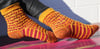 This stitch pattern reminded me of torches, hence the name of these socks. Since only one color is used at a time, the stitch pattern is not difficult. Cable stitches mixed in with the slipped stitches make for an interesting knit. Worked toe-up with a round toe and afterthought heels, these socks are a great use of slightly variegated yarns that contrast well with each other.