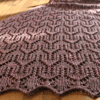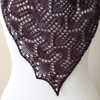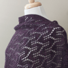 This sideways asymmetrical shawl is worked with an allover lace pattern creating interest and texture. Use a luxurious sport-weight yarn as suggested here. Or, a fingering or sock yarn could also work well. A rich colour like this deep purple will create a beautiful and luxurious shawl for any occasion.