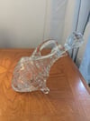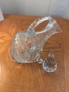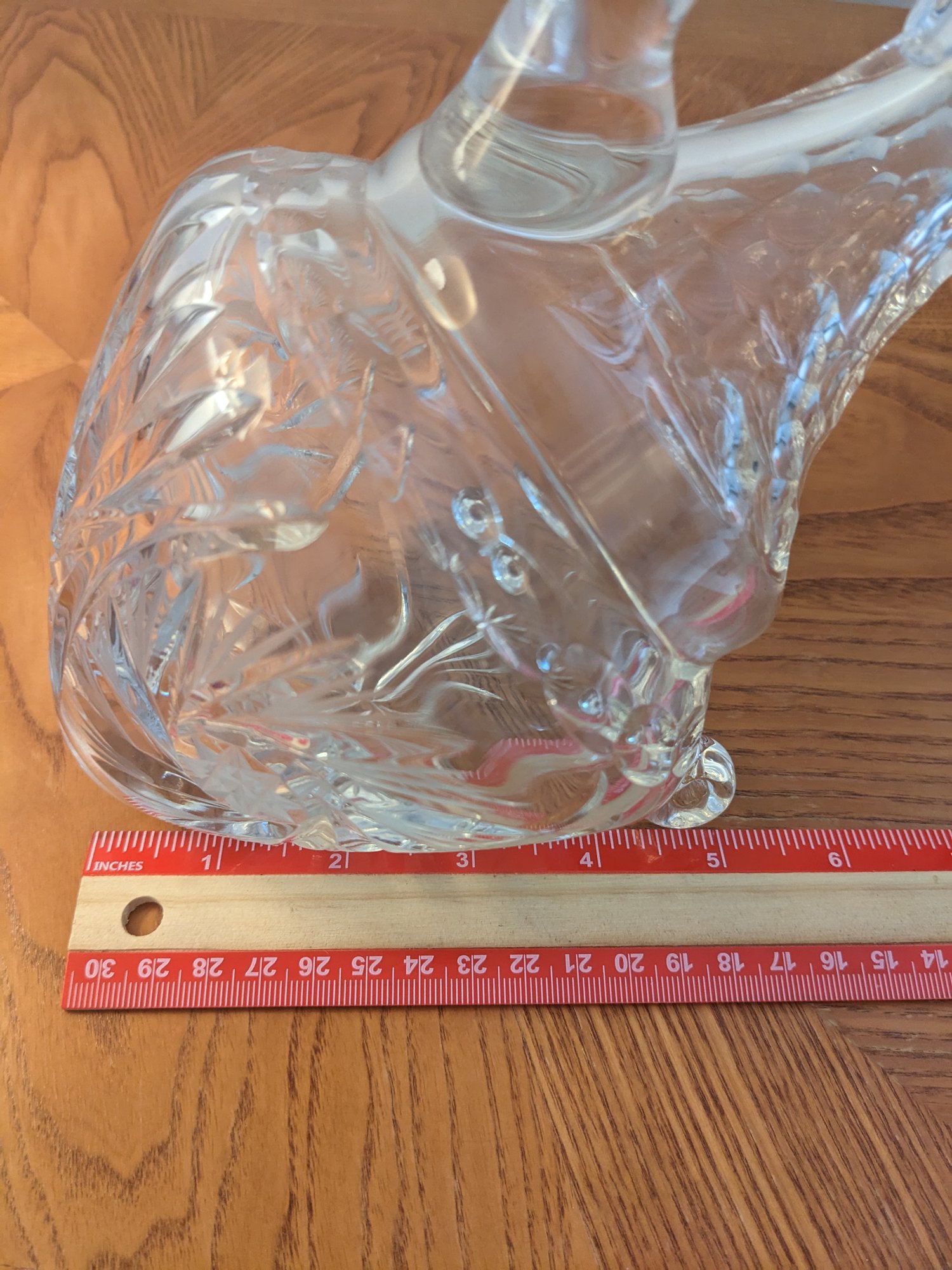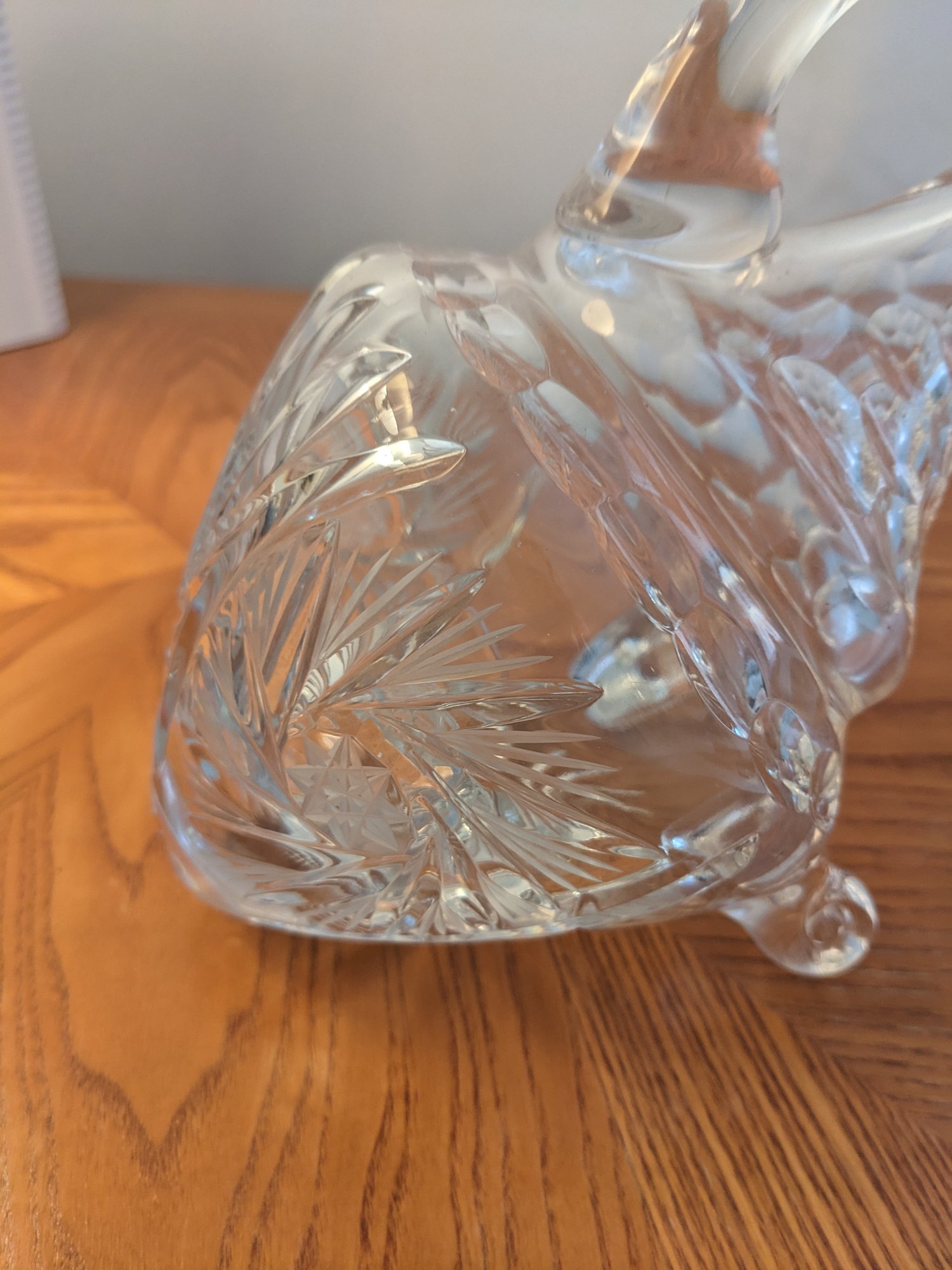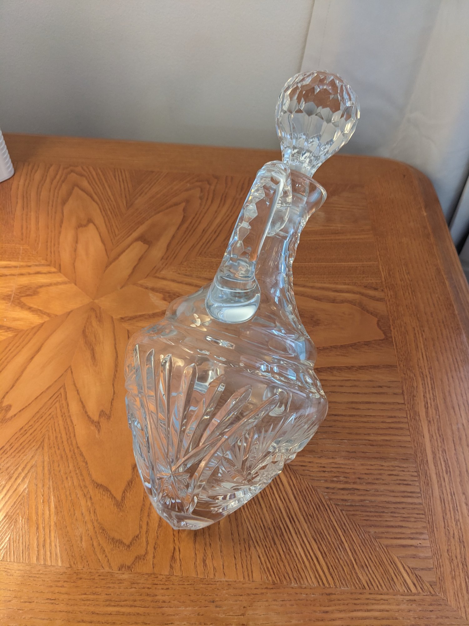 This style of decanter, with feet, reminds me of the vintage duck style decanters of the 60s, and is hard style to find. It is heavy, it weighs 1665g and is in excellent vintage condition. As with most vintage decanters the tops are designed to hold very heavy crystal stoppers and are not the best design for pouring. However, that is part of its retro charm!