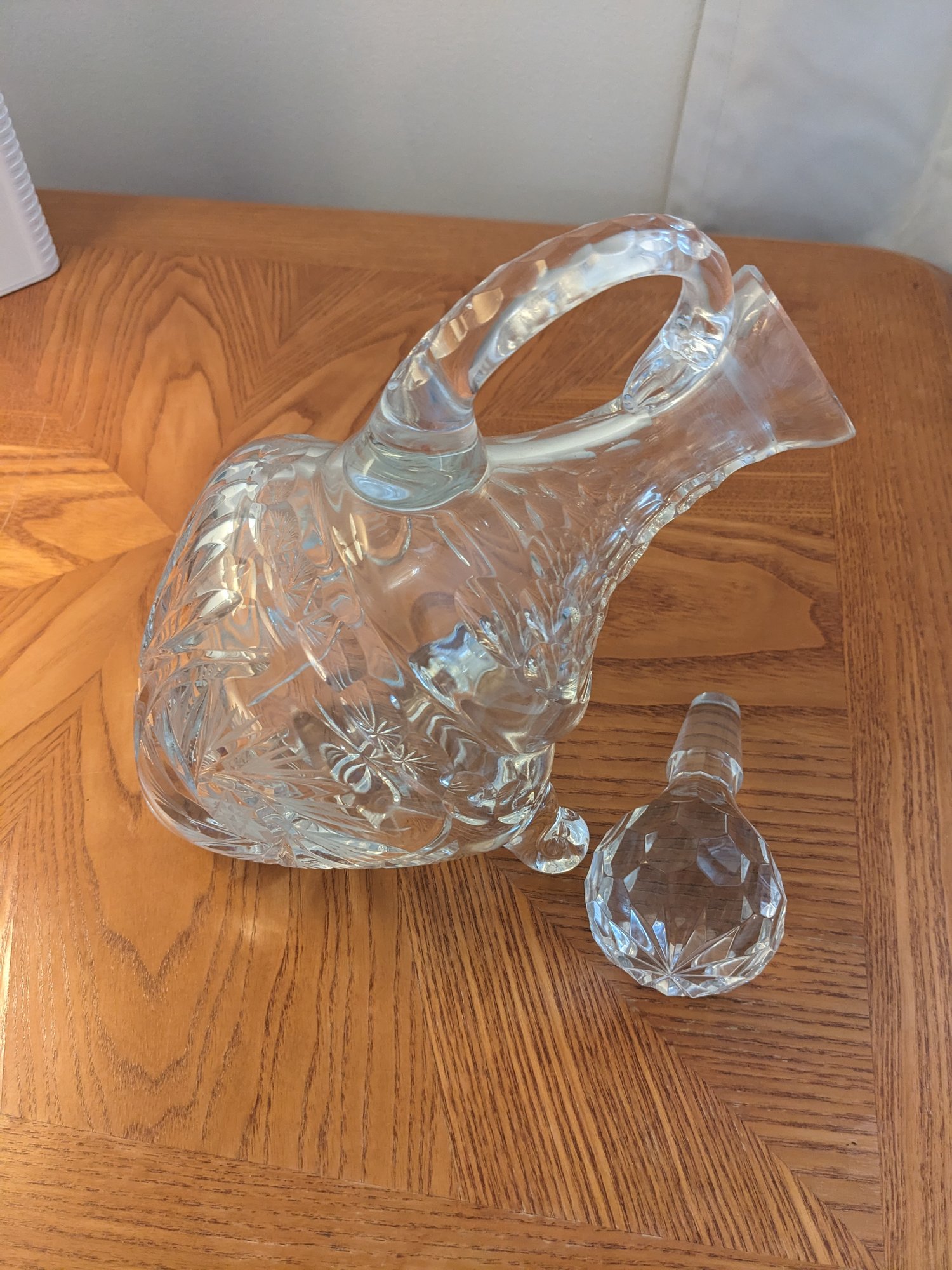 A beautiful hard-to-find style of decanter, in the discontinued PINWHEEL DESIGN, with the star of David in the centre. I would think it is mostly used for wine, but it could of course be used for anything that works for you. It's capacity is approximately 700 ml, so it doesn't quite hold a full bottle of wine.