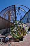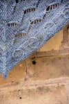 This bandana cowl is easy to wear: all the drama of a triangular shawl without the bulk behind the neck or the tendency to fall off! The diagonal lines of the lace echo the sharp diagonals in the inspiration photo while the circular cables reference the huge whisk-like bulb.