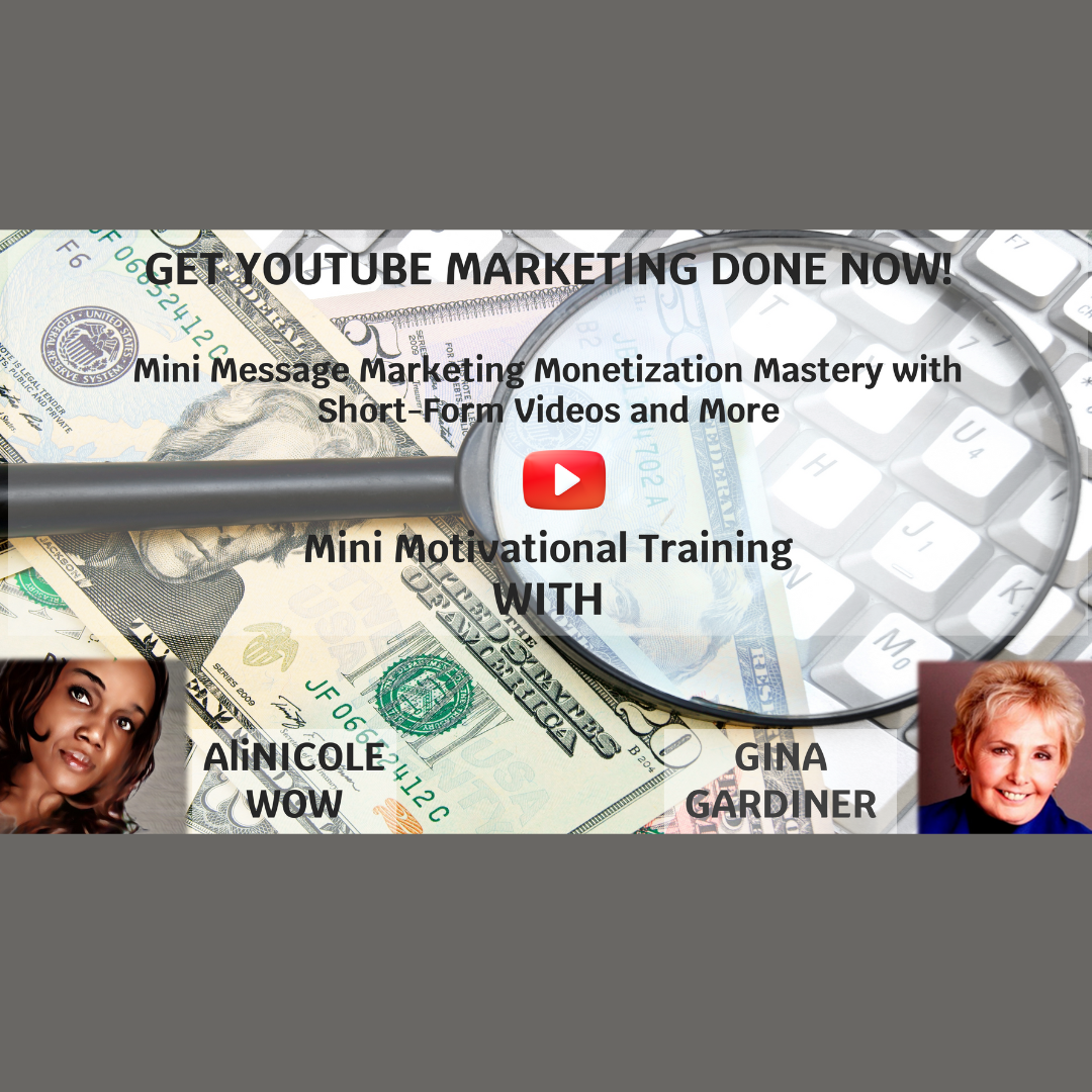 Get YouTube Marketing Done NOW!: Mini Message Marketing Monetization Mastery with Short-form Videos & More Mini Motivational Training with AliNICOLE WOW! & Gina Gardiner