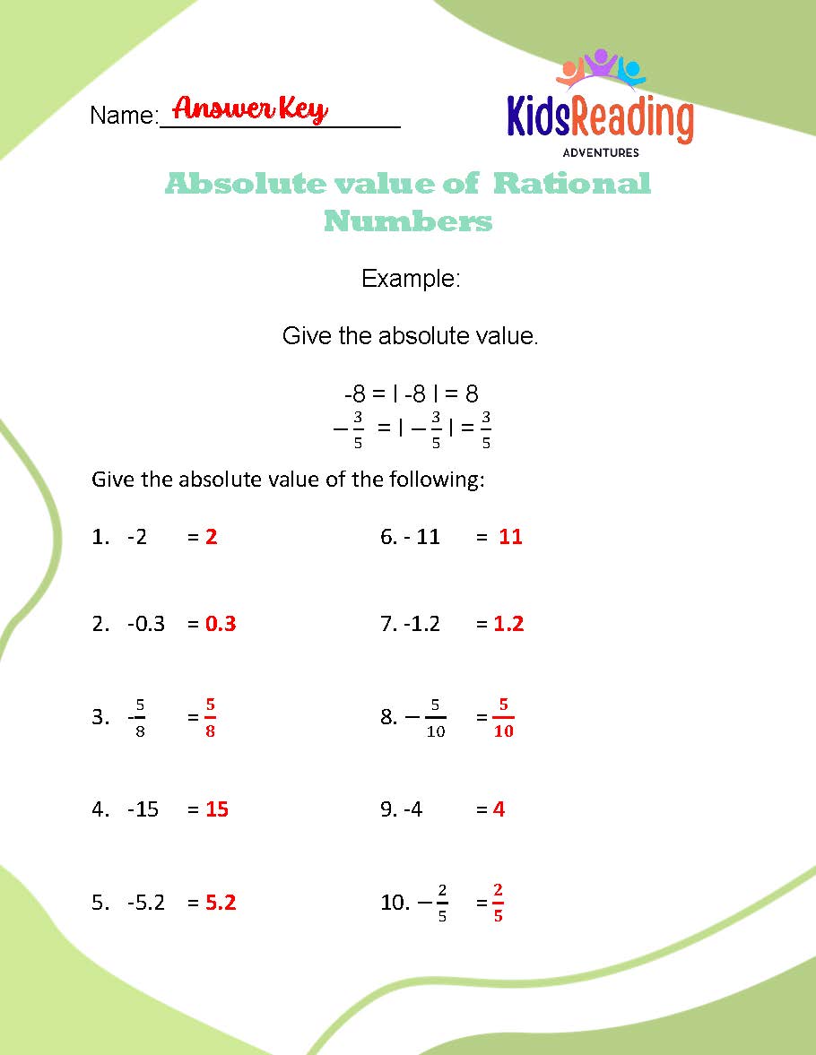 5. **Absolute Value of Rational Numbers:** Delve into the concept of absolute value and its application to rational numbers. Through real-world scenarios and problem-solving tasks, students will explore the significance of absolute value in mathematics and beyond.