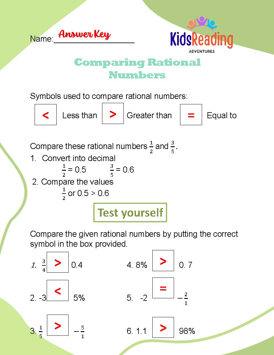 3. **Comparing Rational Numbers:** Dive into the realm of rational numbers and learn techniques for comparing them. Through comparative exercises, students will develop strategies for determining the relative magnitudes of rational numbers.