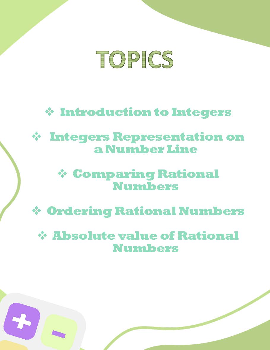 1. **Introduction to Integers:** Lay the foundation for understanding integers with clear explanations and illustrative examples. Through a series of practice problems, students will gain fluency in identifying and working with integers.