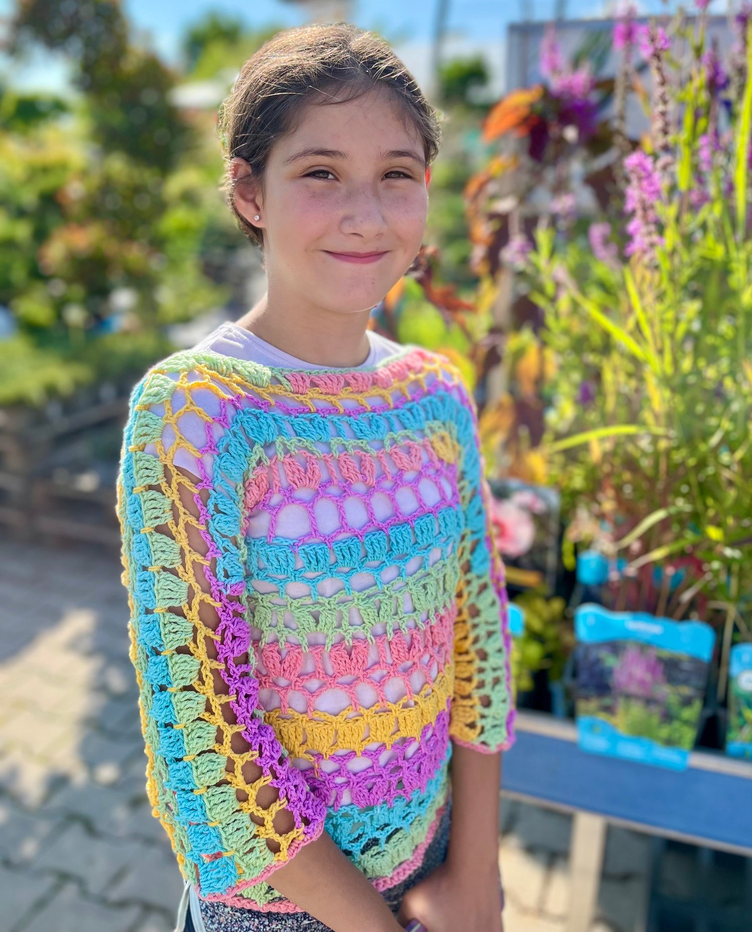 Download the Fun & Playful Mesh Sweater crochet pattern today and let your creativity shine with color!