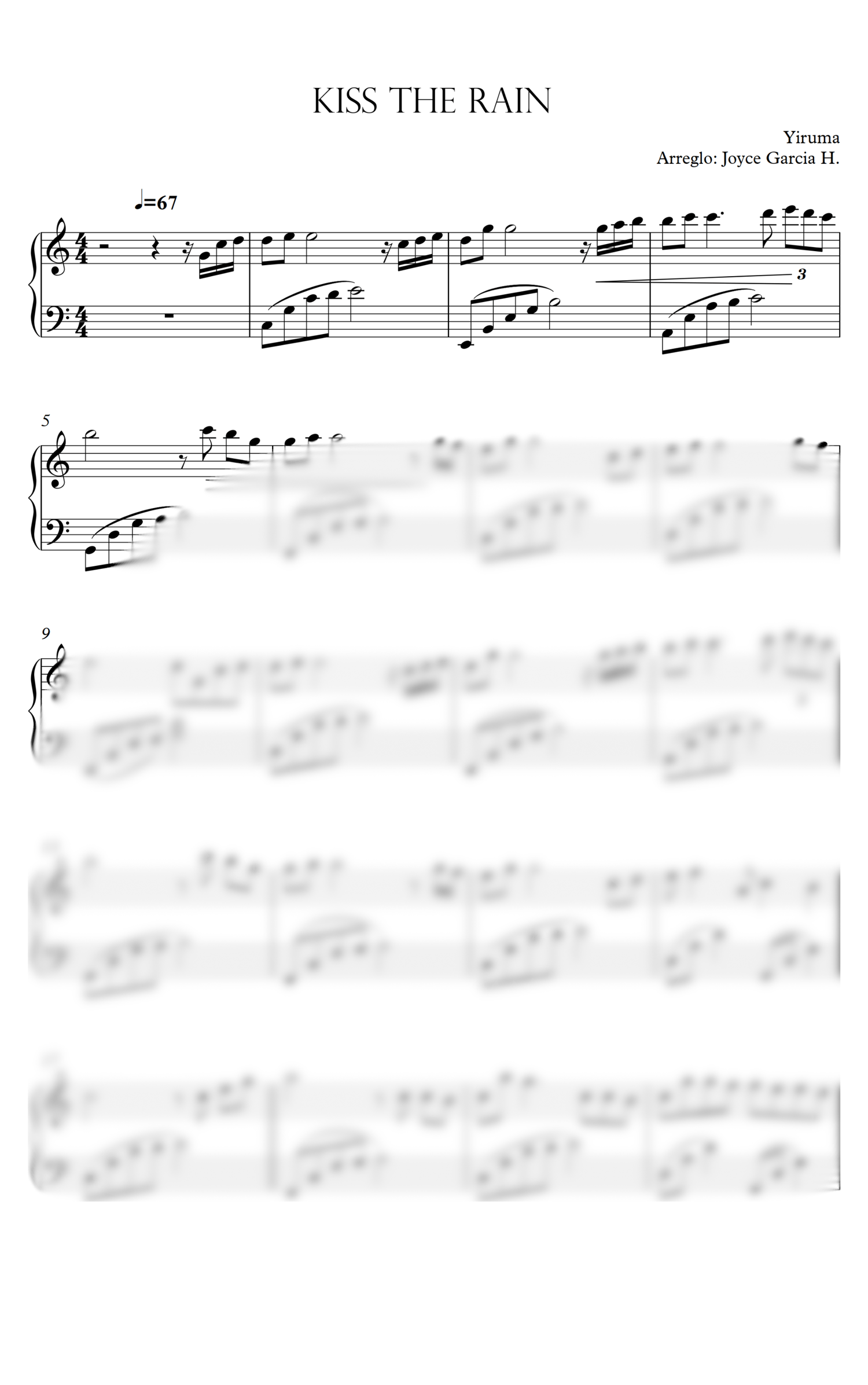 Versión adaptada para piano del tema Kiss the Rain de Yiruma. Ideal para estudiantes, profesores o músicos que deseen interpretarlo en recitales, clases o presentaciones especiales.