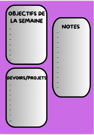 - 1 page avec tes objectifs, tes notes ou encore tes devoirs à faire