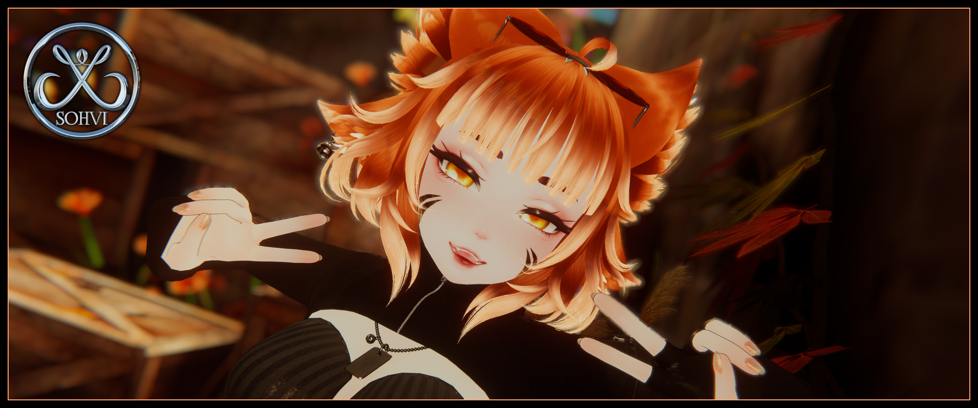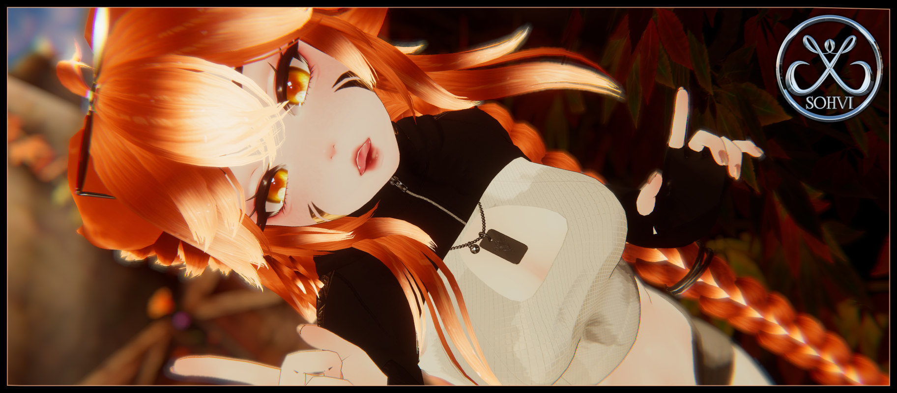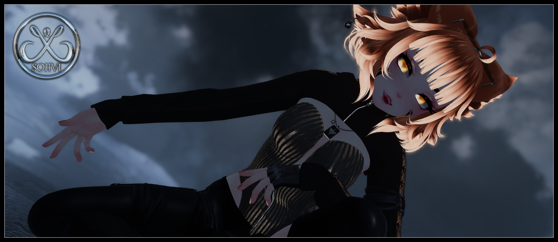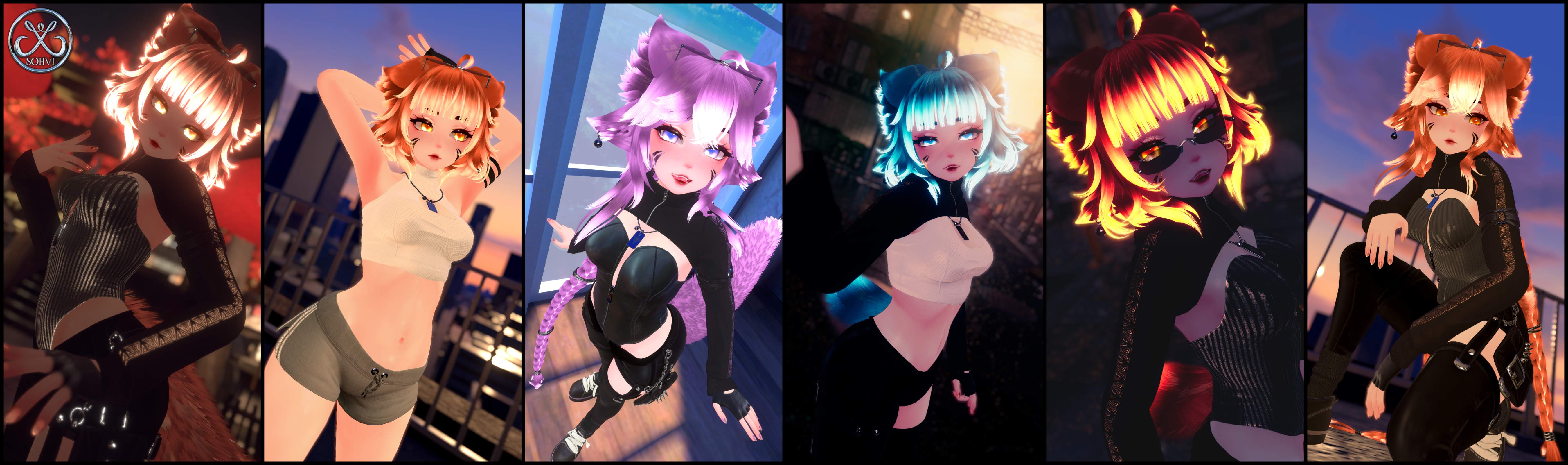 All other clothing and accessories, Big tail, Eye texture, Contact particles, Menu icons by me (sohvi.art) in Blender, Substance Painter and Clip studio paint. All images used are clip studio brushes or hand painted.