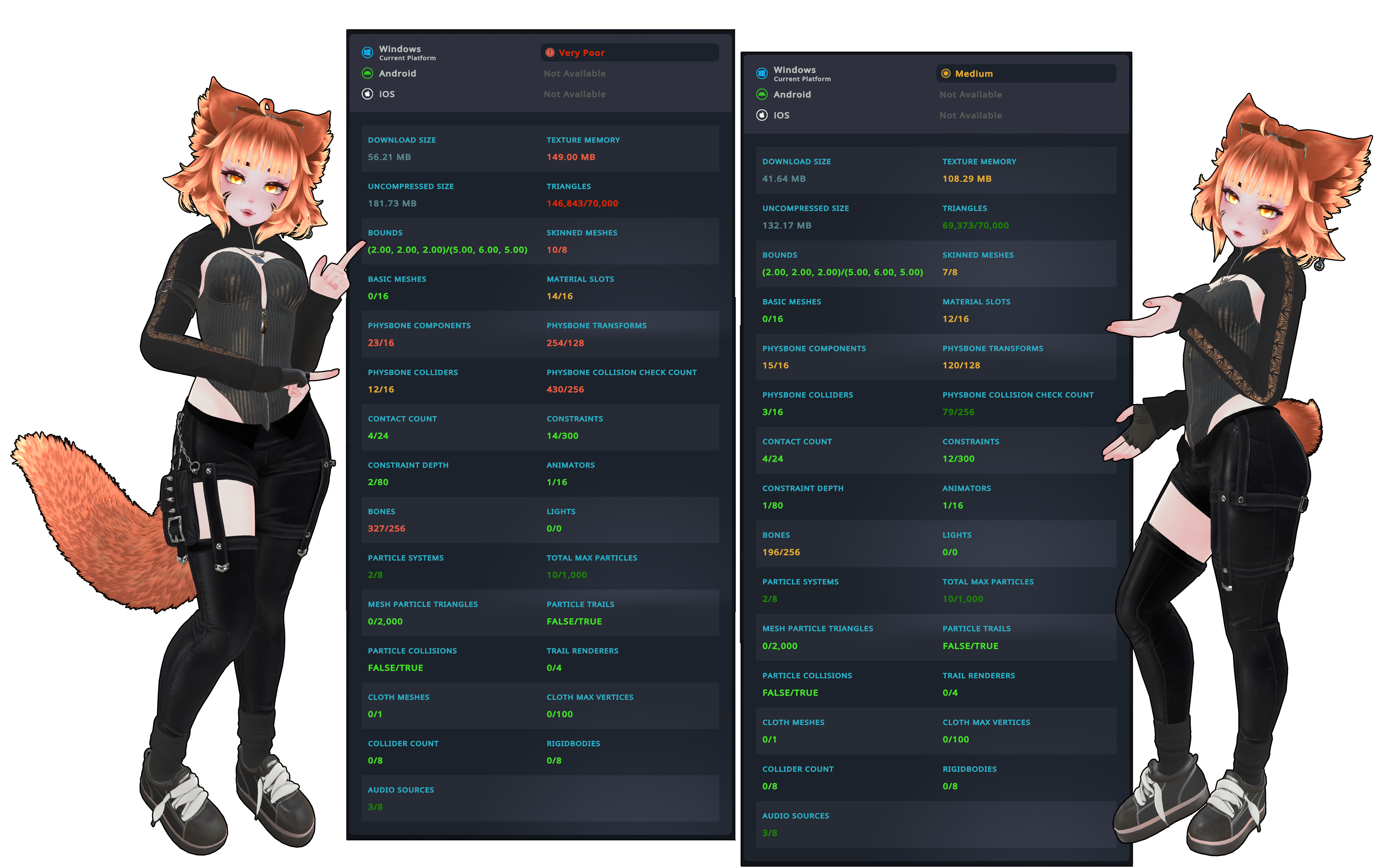 -> If VRChat updates break the avatar I'm not responsible to fix it. However I do provide updates and fixes to my avatars when I can.