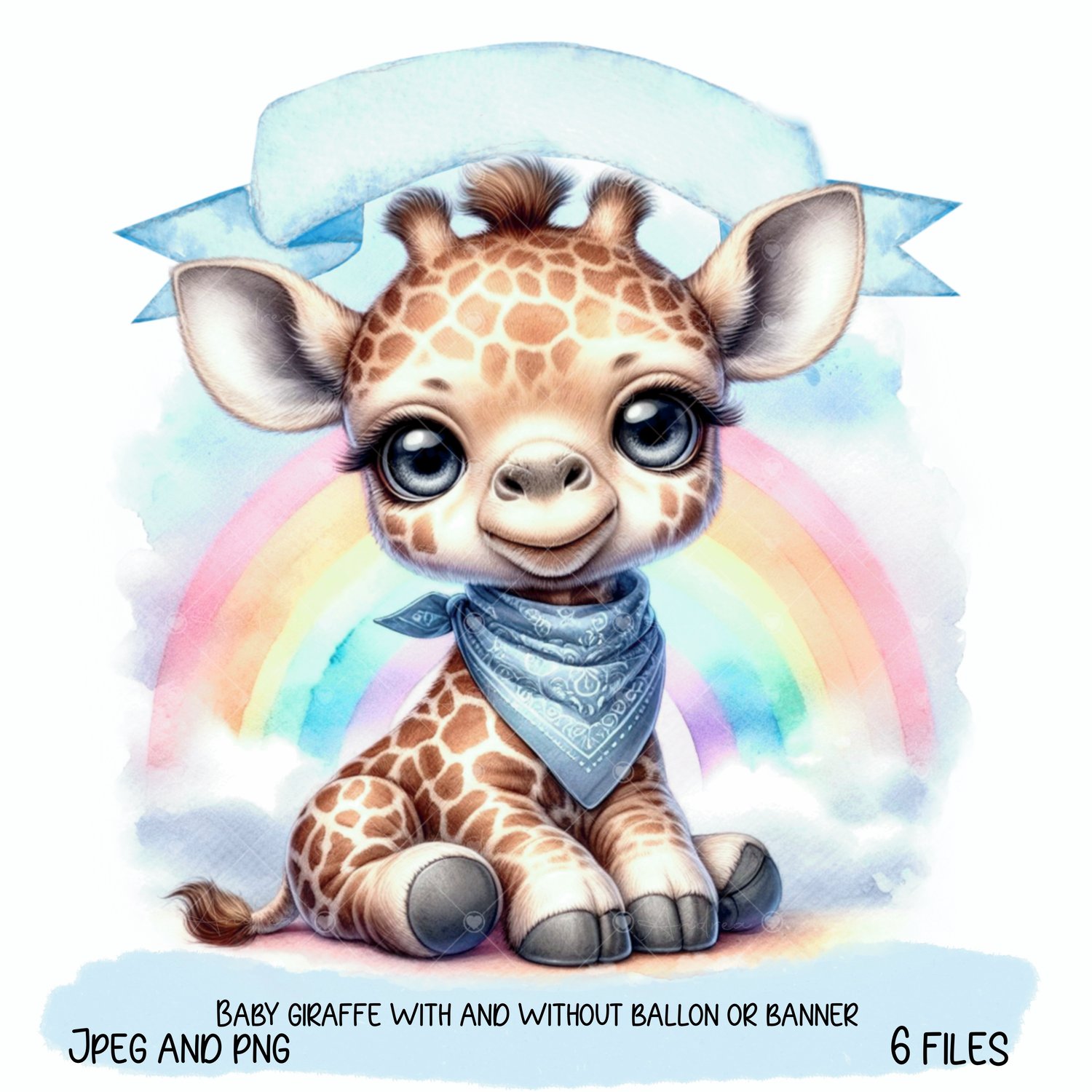 - baby boy giraffe with rainbow and banner, PNG and JPEG format.