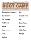 For the boot camps, one, two or three copies of the Boot Camp page can be printed out and given to students as a skill building activity before starting constructing cardboard sculpture.