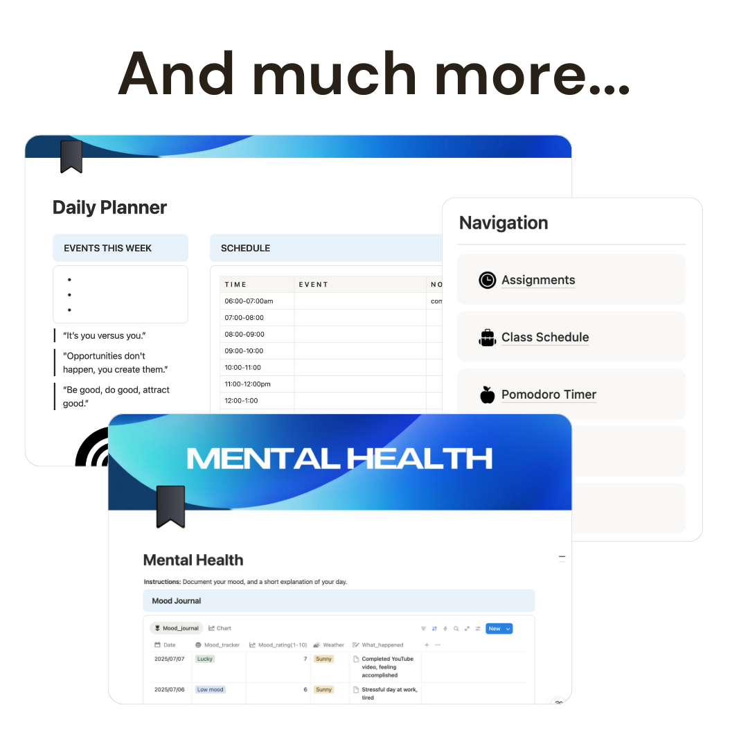 ✔️ Meal Prep and Workout pages to balance academics with lifestyle