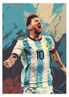 Relive the magic of a football legend with "Messi: Glory of Argentina." This poster captures Lionel Messi in his iconic Argentina jersey, celebrating his extraordinary journey and triumphs with the national team. With the sky-blue and white colors of Argentina as a backdrop, the design embodies the pride, passion, and brilliance that define his legacy. Perfect for fans of the world’s greatest player, this piece is a timeless tribute to Messi’s role in bringing glory to his nation.